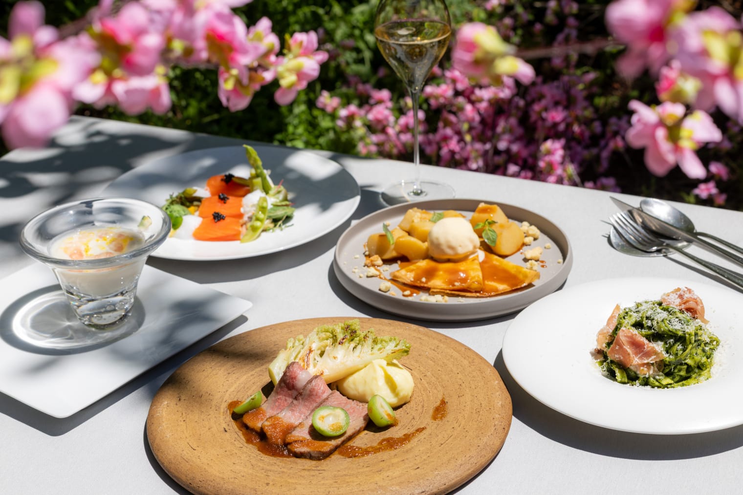 Enjoy a course lunch and wine pairing in the exclusive seating area of the private peach farm, which depicts the story of peaches from flower to fruit. Enjoy an elegant time while tasting dishes that make most of the ingredients.