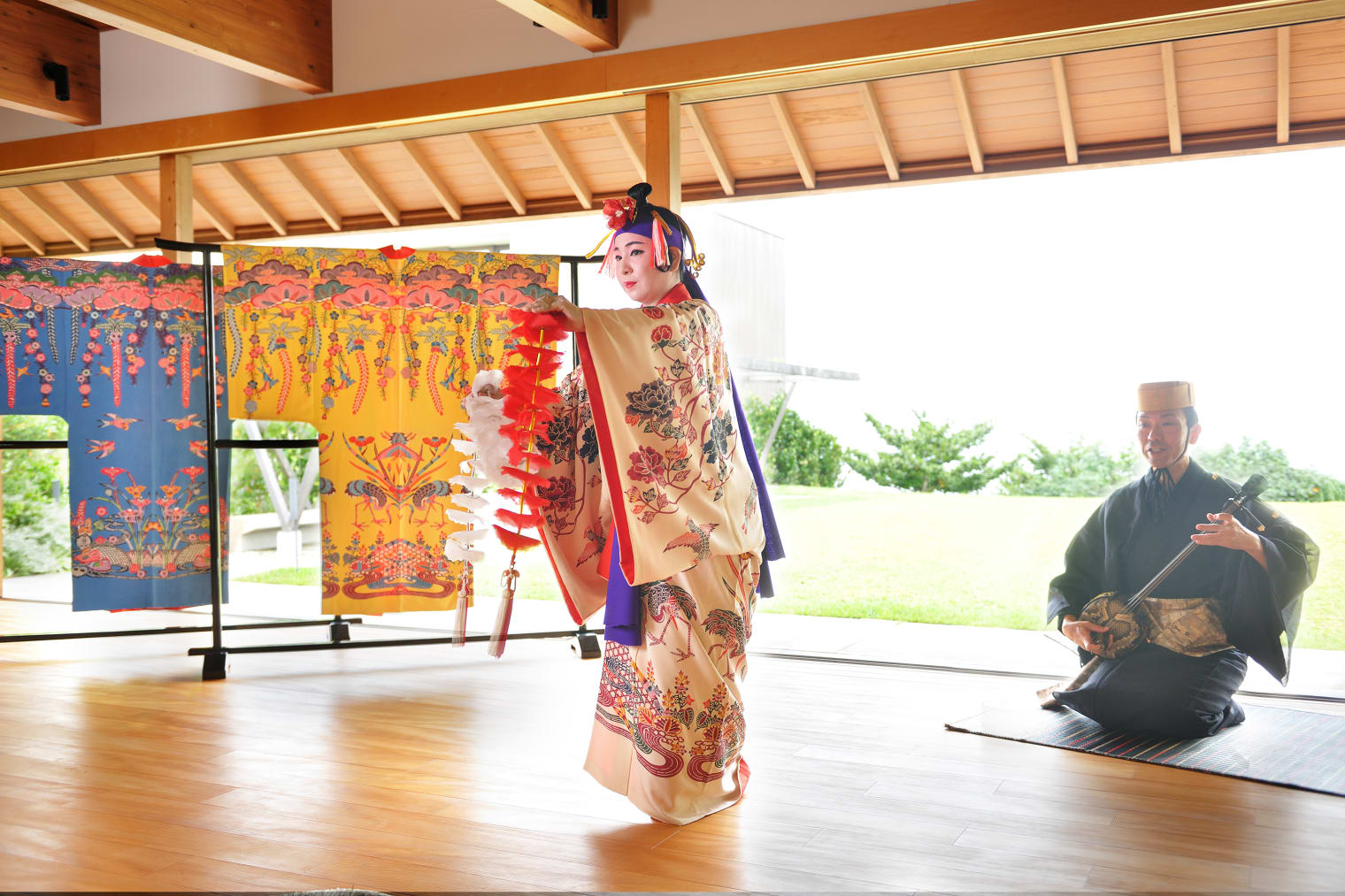Bingata, originally worn in Shinto rituals, evolved into stage costumes as Ryukyu culture thrived. Its colors and patterns express emotions, status, and the unique beauty of Ryukyu sensibilities.