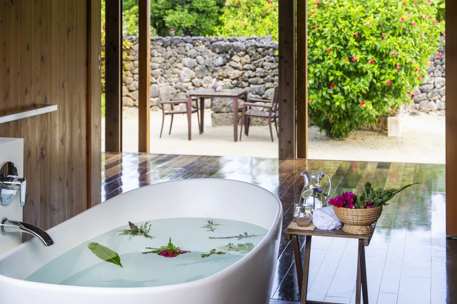 Enjoy a luxurious time of healing through spa treatments with Imekusa herbal balls, breezy guestrooms filled with the scent of the south wind, fragrant herbal baths, and floating bathing experiences.
