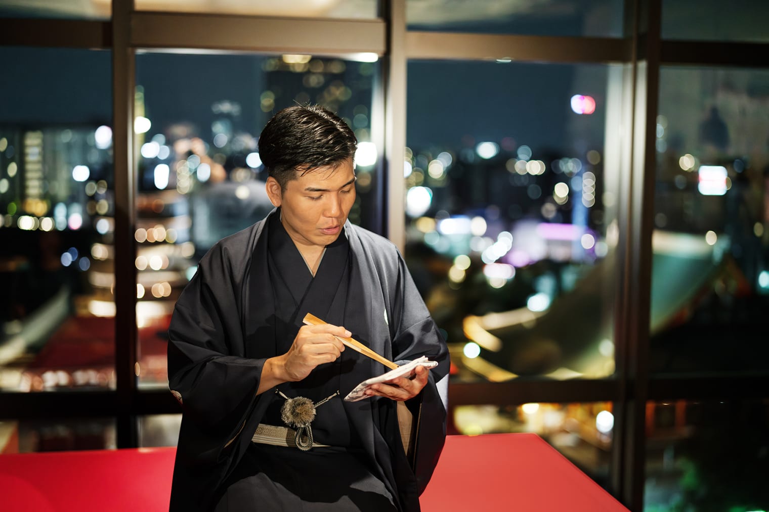 It is an event where you can experience rakugo representing entertainment of Asakusa up close with OMO base on the top floor overlooking the city of Asakusa.