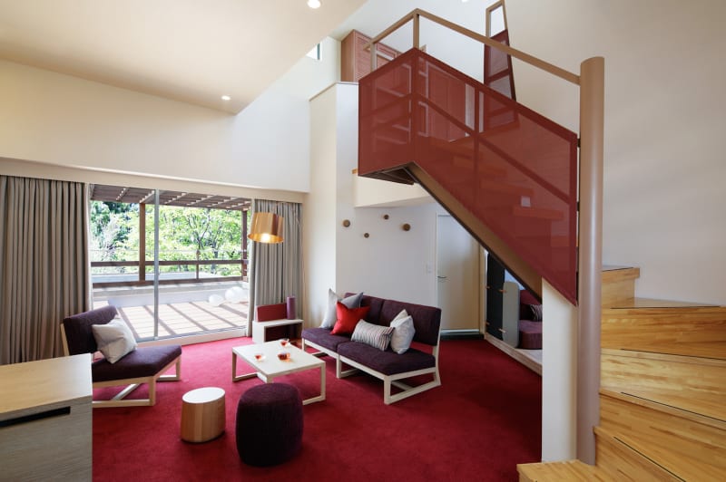 Yamanashi is a renowned wine region. Our guest rooms, designed with Bordeaux colors, offer high comfort and are ideal for long stays.