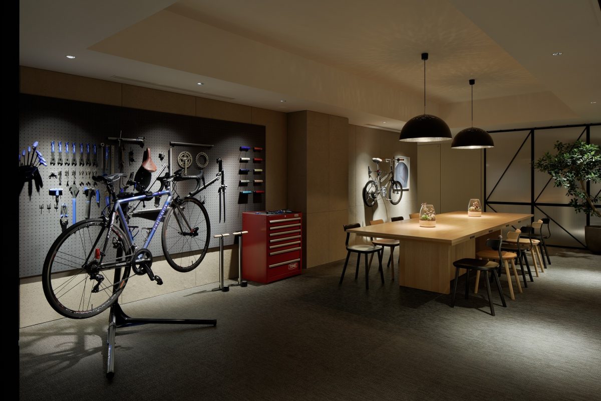 2. Exceptionally Cycle-Friendly DesignThe hotel features a spacious design that makes it easy to move around with a bicycle. Guests can freely use the Cycle Space, a dedicated maintenance area, at any time during their stay. It is also an ideal spot for cyclists to gather and exchange information. Maintenance tools, laundry supplies, and shoe dryers are available for rent, so guests can arrive empty-handed. For those who never want to leave their bike's side, the Cycle Room is highly recommended. In addition to bringing bicycles into the room, guests can rent exclusive items like special loungewear and bedding designed for "sleeping with your bike."3. TAMARIBA: The 24-Hour Public SpaceThe 24-hour public space, TAMARIBA, is the perfect spot for everyone to hang out. Stylish bicycle displays, along with free-to-use lanterns and board games, help create a unique atmosphere. The adjacent cafe sells wine and beer by the liter. Guests can also use the Fender Blender, a bicycle-powered blender, to make their own fresh morning smoothies. Additionally, the famous Whole Melon Cream Soda is available year-round. This popular treat, which once drew lines of 600 people and is usually only found at festivals or select shops in Ibaraki, is a must-try.