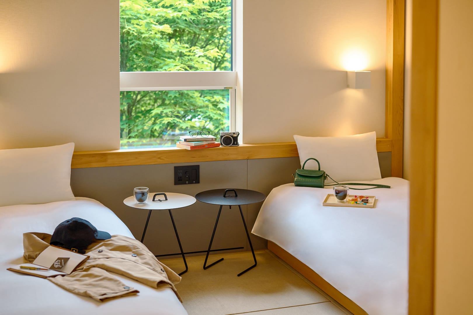 周辺には16のショップとレストランが連なる軽井沢の小さな街「ハルニレテラス」や、信州の旬の素材を楽しめる「村民食堂」、天然氷のスケートや自然アクティビティなど、星野エリアならではのコンテンツが豊富に揃います。