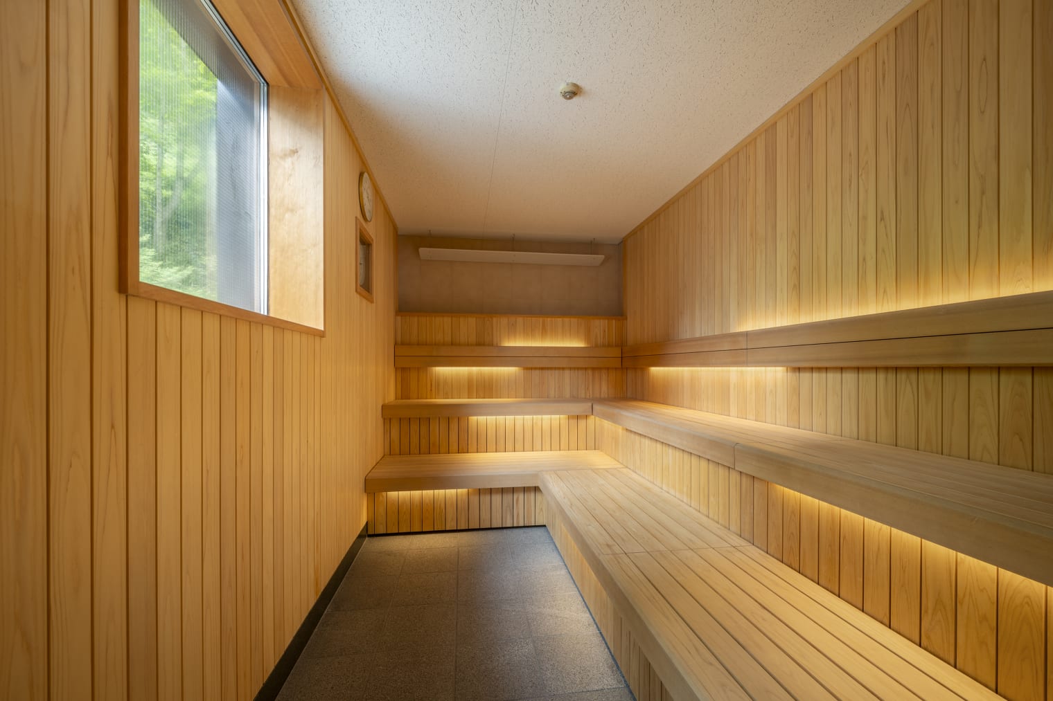 ヒノキ造りのトンボのサウナ