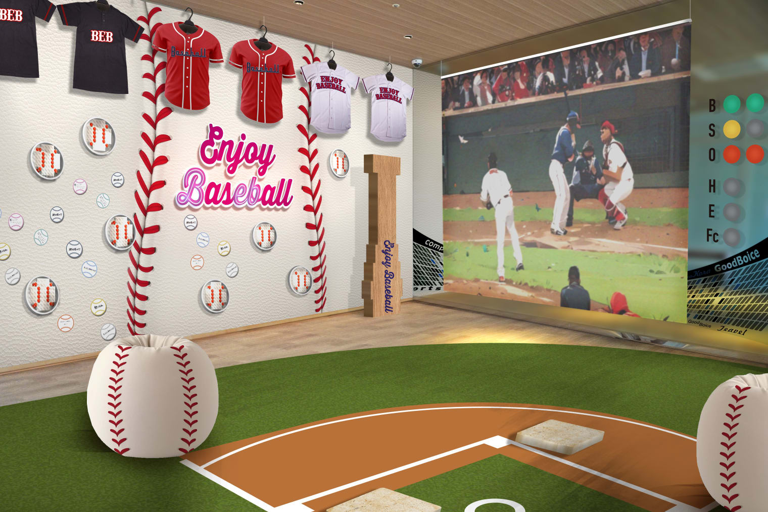 室内に広がる芝、電光掲示板を模した壁面、本物のバットを使用したテーブルなど、野球をテーマにしています。今年は装飾に天井まで広がるジェット風船も加わり、より没入できるお部屋に進化!