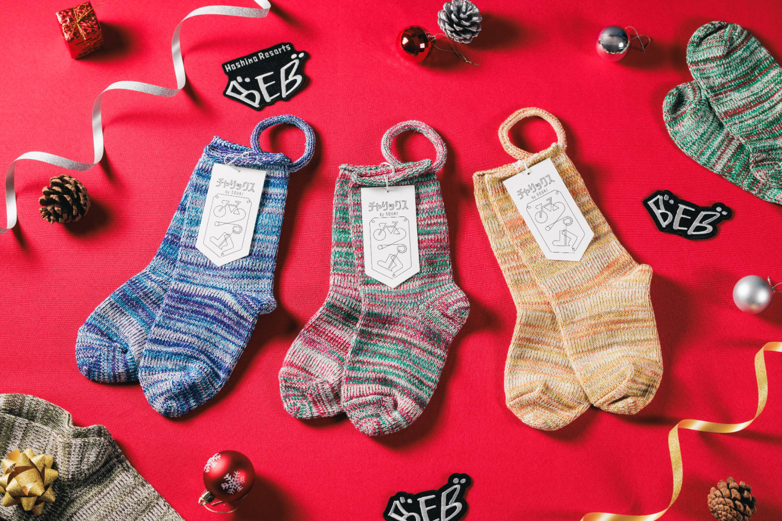 靴下の編機をアップサイクルし、自転車と融合させた機械で編みます。糸もアップサイクルで染められたものを使用します。