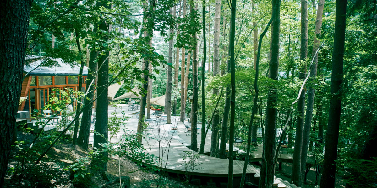 斜面に浮かぶテラスとキャビン