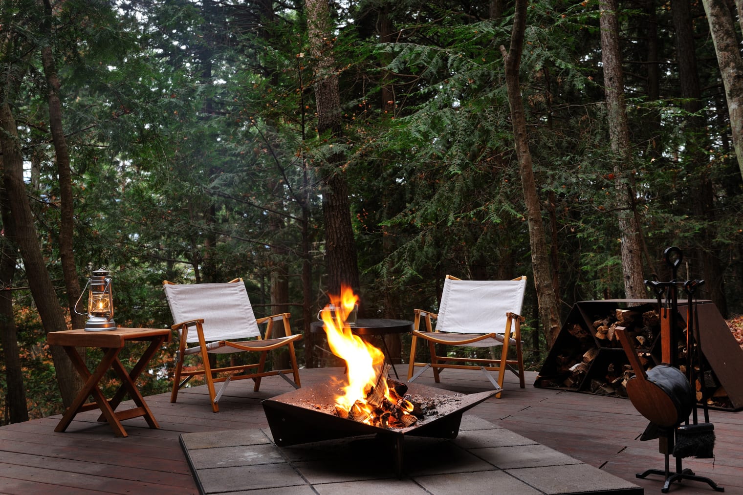 狩猟体験の前日には、星のや富士の森を歩き、動物の獣道や痕跡を見つけて息遣いを感じ、焚き火を囲んで過ごすことで、人と動物が共存する自然の中で翌日の狩猟への期待感を高めます。