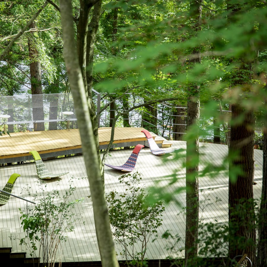 標高約800mに位置する河口湖の夏は、朝晩に心地よい風が吹き、涼しく過ごすことができます。夏空の下、木陰でハンモックに揺られ、葉が風にそよぐ音を聞いたり、森の中でワイルドな料理を楽しんだりと、心ゆくまで自然を満喫する時間をお楽しみください。