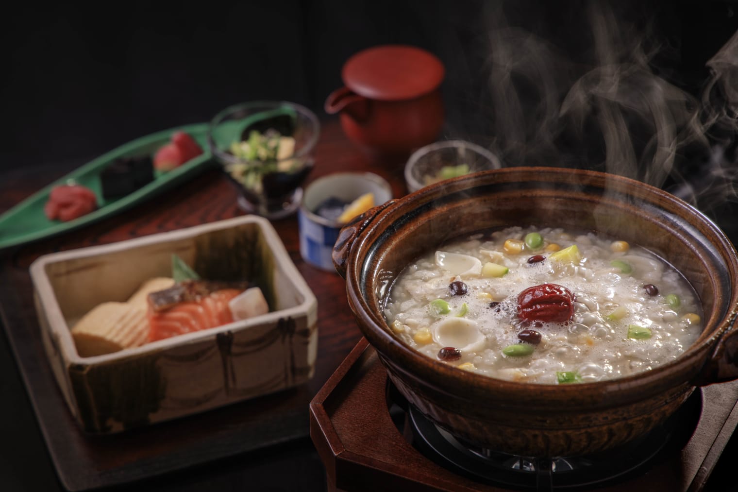 信州ならではの旬の味覚を堪能するメインダイニング「日本料理 嘉助」での食事に加え、ウォーキング後には、スポーツ栄養学に基づき薬膳の考えを取り入れた夕食と朝食を、客室でゆったりと味わう。