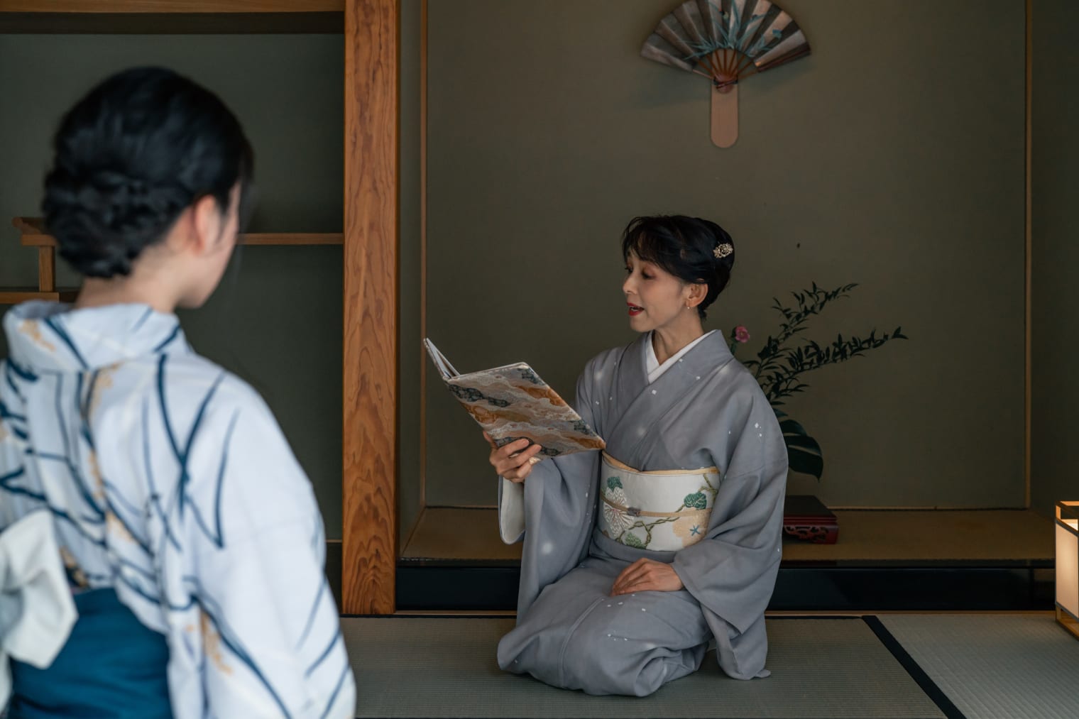 源氏物語の語りから千年の時を超える物語の魅力に触れます。語り部は、源氏物語を百年前の京ことばで語る、山下智子氏。蛍の光に照らされた玉鬘の美しさに兵部卿宮が心奪われる名場面を生き生きと語ります。