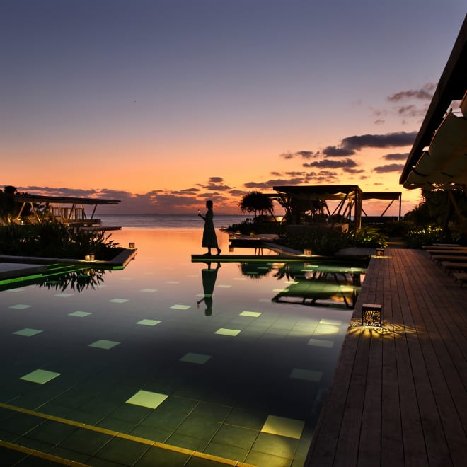 一年中温暖な沖縄にも、海の色、吹き抜ける風、旧暦の営みに宿る、確かな季節の移ろいがあります。「グスクの居館」である星のや沖縄は、その変化を最も美しく望める場所。客室やプール、庭から眺める海と空は、季節ごとに表情を変えます。その時季ならではの自然や文化に触れ、一年の巡りを静かに味わう滞在を叶えます。