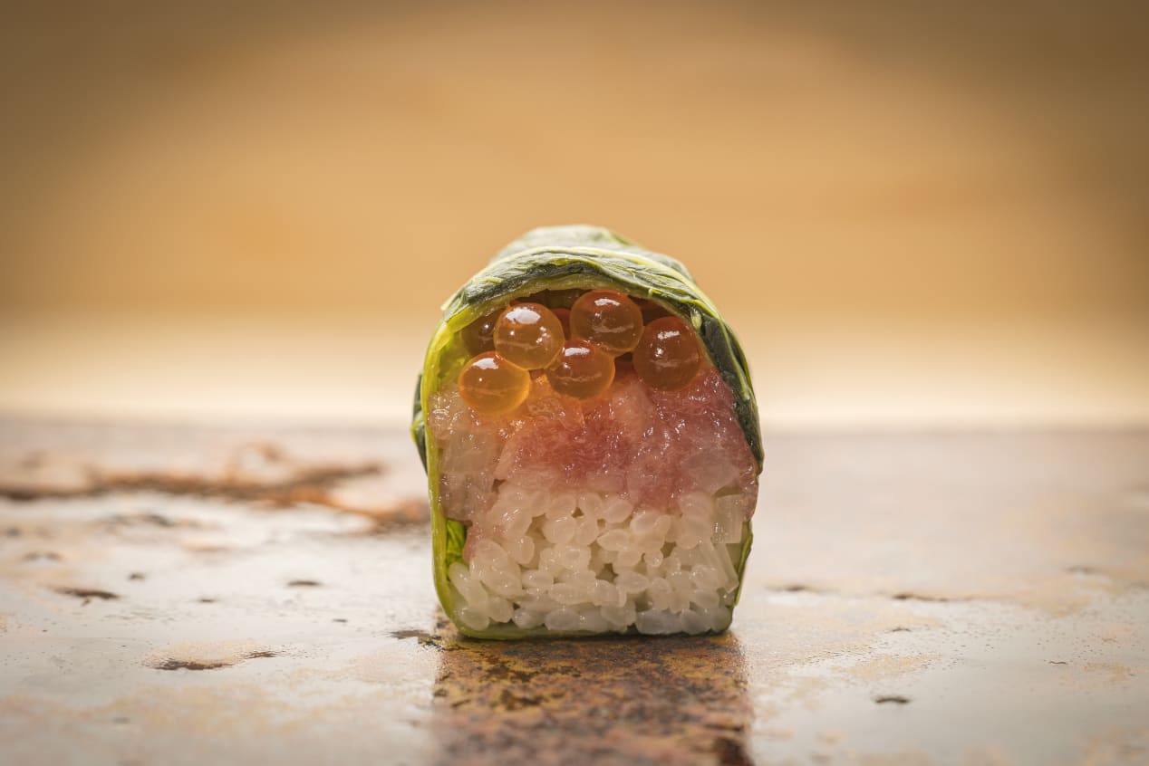 江戸前の粋と地方の鮨文化が融合する「握り」と、日本料理の技術を活かした「酒肴」をご提案します。湯上りに裸足、館内着という寛ぎの装いでの美食体験は、日本旅館にある鮨屋だからこそ叶う贅沢です。