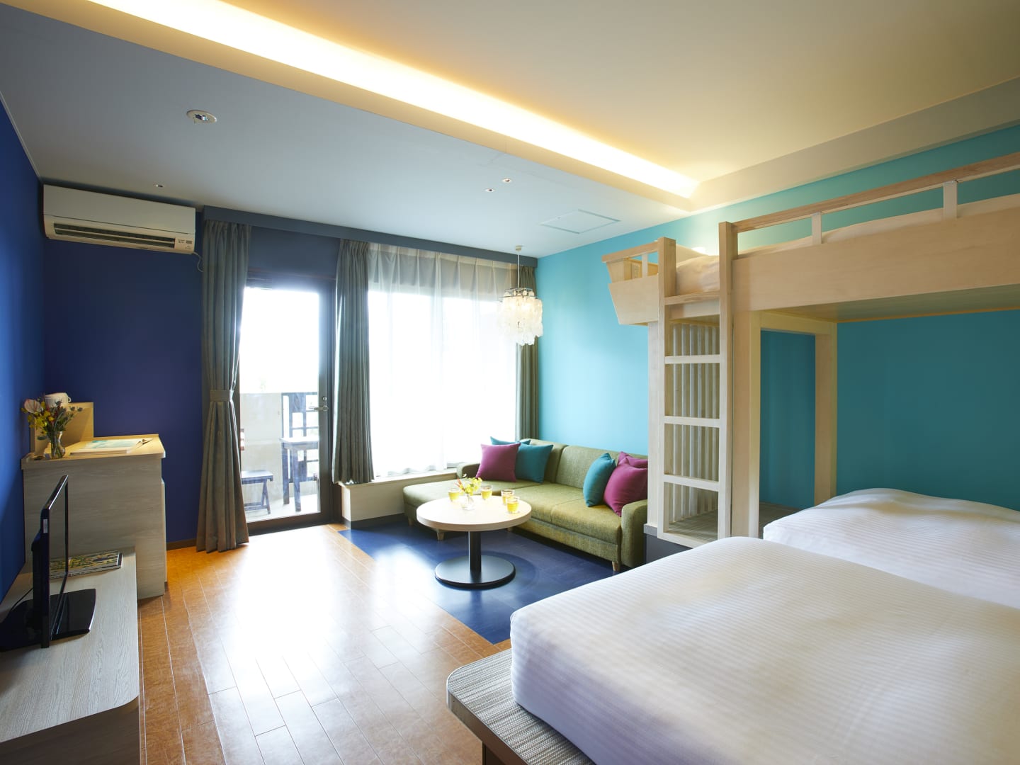 目の前に広がるビーチ「トゥドゥマリ浜」を望む最上階のお部屋です。ロフトベットを設置し、大人3名がゆったりと過ごせる空間です。