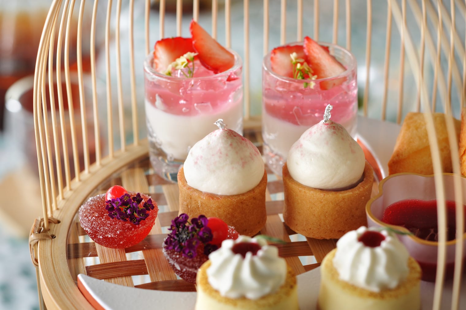 宮城の“おいしい”をモダンに編みなおした、春の「伊達な茶会アフタヌーンティー」。 ずんだや仙台麩、笹かまぼこなど、地元の豊かな食材をフランス料理の技法で昇華させたスイーツとセイボリーが全11品揃います。 乾杯には「ミガキイチゴ」のスパークリング、お茶には香ばしくも優しい甘みの「ほうじ和紅茶」をご用意しました。 どちらの飲み物も地元生産者の思いのこもった逸品です。名取川のせせらぎが寄り添う「せせらきラウンジ」にて、日常を忘れる贅沢なひとときをお過ごしください。