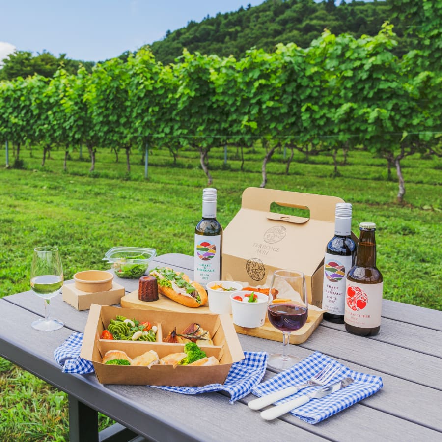 敷地内にはカフェやランチメニューもあり、予約制のディナーもご用意。季節の食材を取り入れた料理とともに、宮城ならではの“テロワージュ(Terroir + Mariage)”をご堪能いただけます。