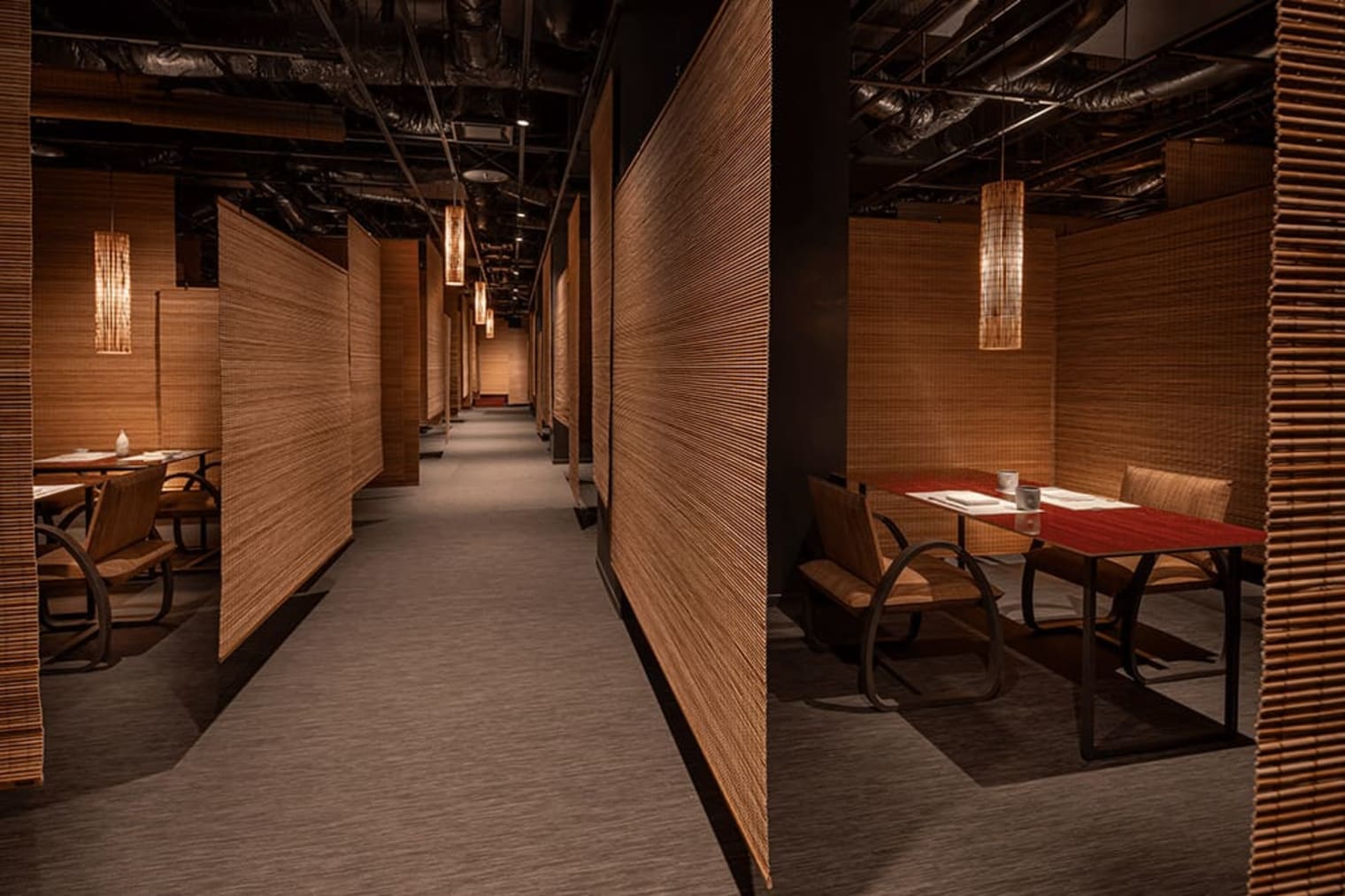 夕食は半個室の食事処でお食事ができます。本プランの「おひとりたしなみペアリング」では、ご当地の日本酒やワインなどを少量ずつご提供します。