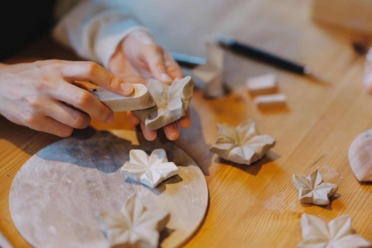界では地域の文化を継承する職人や作家、生産者の方々と連携したご当地文化体験「手業のひととき」を実施しています。界 別府では、幻の焼き物臼杵焼を現代に蘇らせた陶芸家‧宇佐美氏から臼杵焼を学び、オリジナルキーホルダー制作体験をご用意しています。