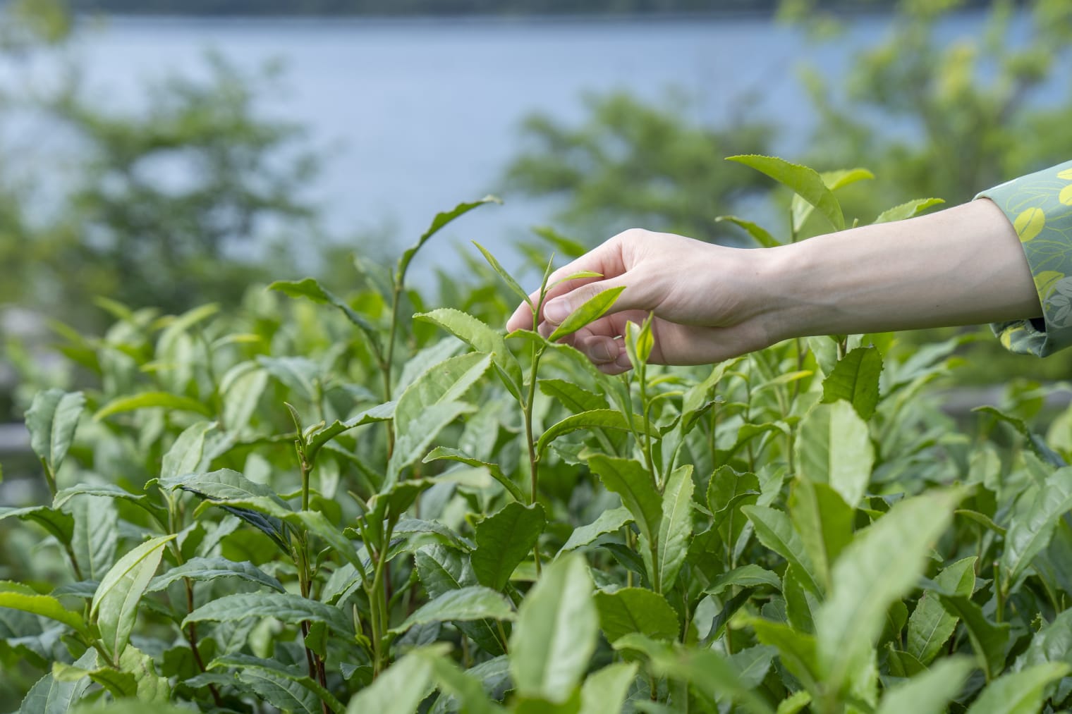 8年の試行錯誤を経てようやく豊かに育ったチャノキに、新茶の季節にしか見られない、生命力に満ちた「一芯二葉(いっしんによう)」(*1)も観察できます。屋外の開放的な空間で、湖から吹き抜ける心地よい風を感じながら、この貴重な瞬間を間近で鑑賞することで、新茶の旬の喜びと、その生育過程におけるストーリーを五感で感じられます。