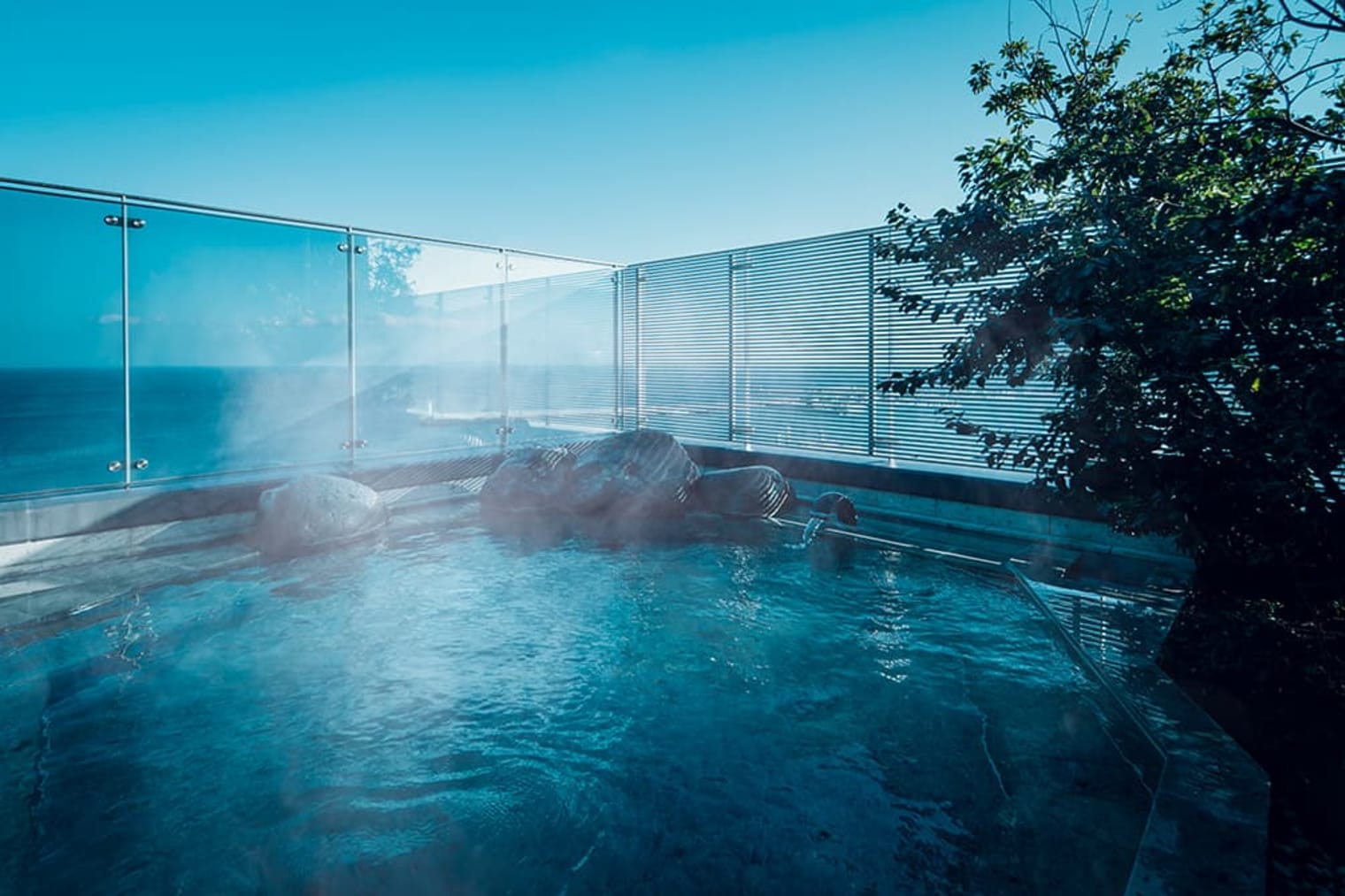 今年は桜オープンバスツアー参加者限定でチェックアウトを済ませたツアー参加後にも、駿河湾と伊東の街を眺めることのできる「界 アンジン」の大浴場の利用が可能です。界 アンジンは、「界 伊東」と同じ伊東市にありながら、特徴の異なるコンセプトやデザインを有しており、ツアー参加者限定で界の滞在を堪能することができます。