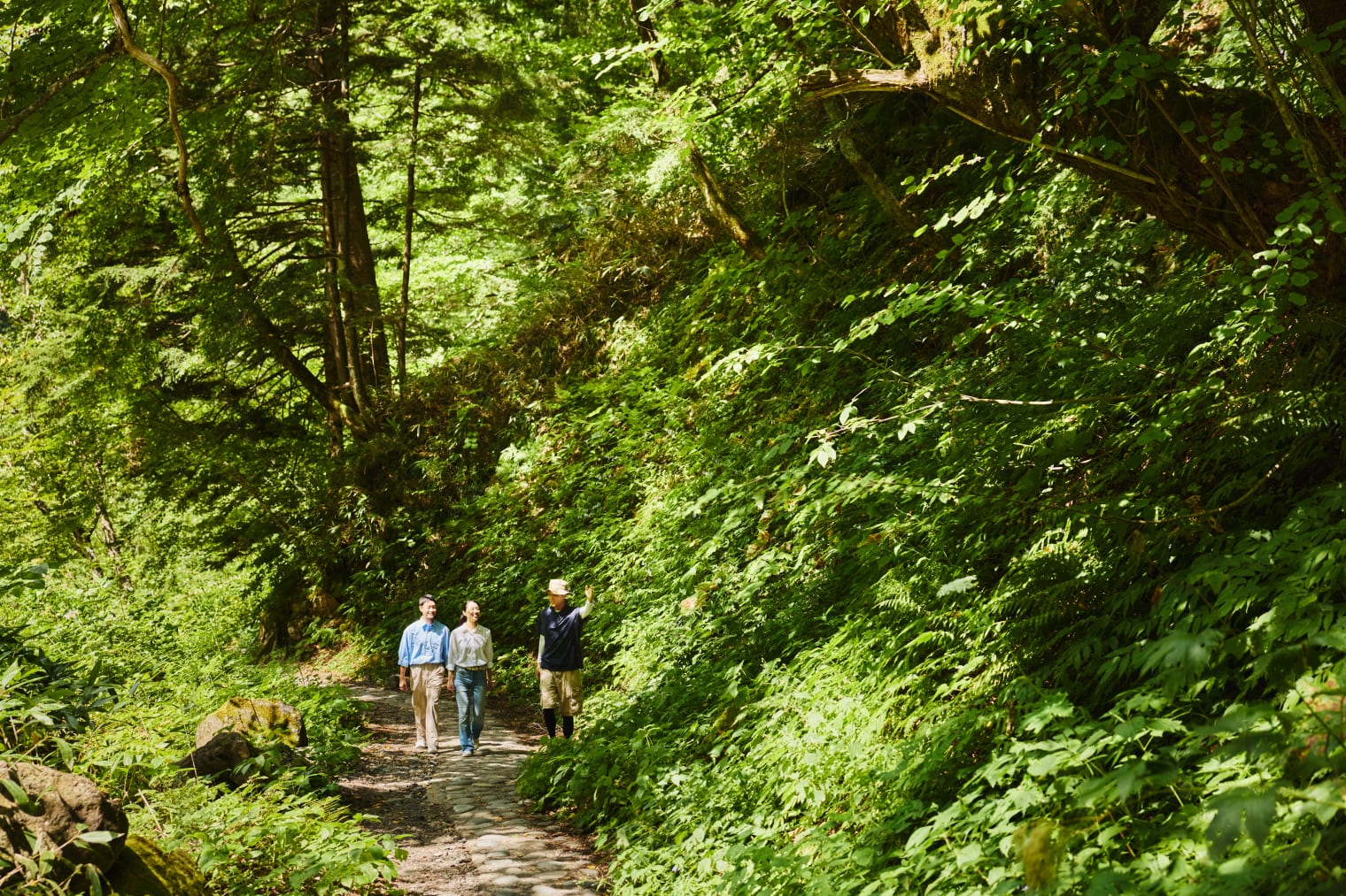 日中には、界 奥飛騨のスタッフと共に、飛騨の森を往復約1時間のコ ースを散策します。心地よい疲労感がある適度な運動は、その日のぐっすりとした眠りにつながります。道中では、飛騨の三大名瀑のひとつである壮大な「平湯大滝」の絶景を眺めたり、木漏れ日の中、飛騨の人々と森の繋がりや植生について学んだりすることで、心身ともにリフレッシュできます。