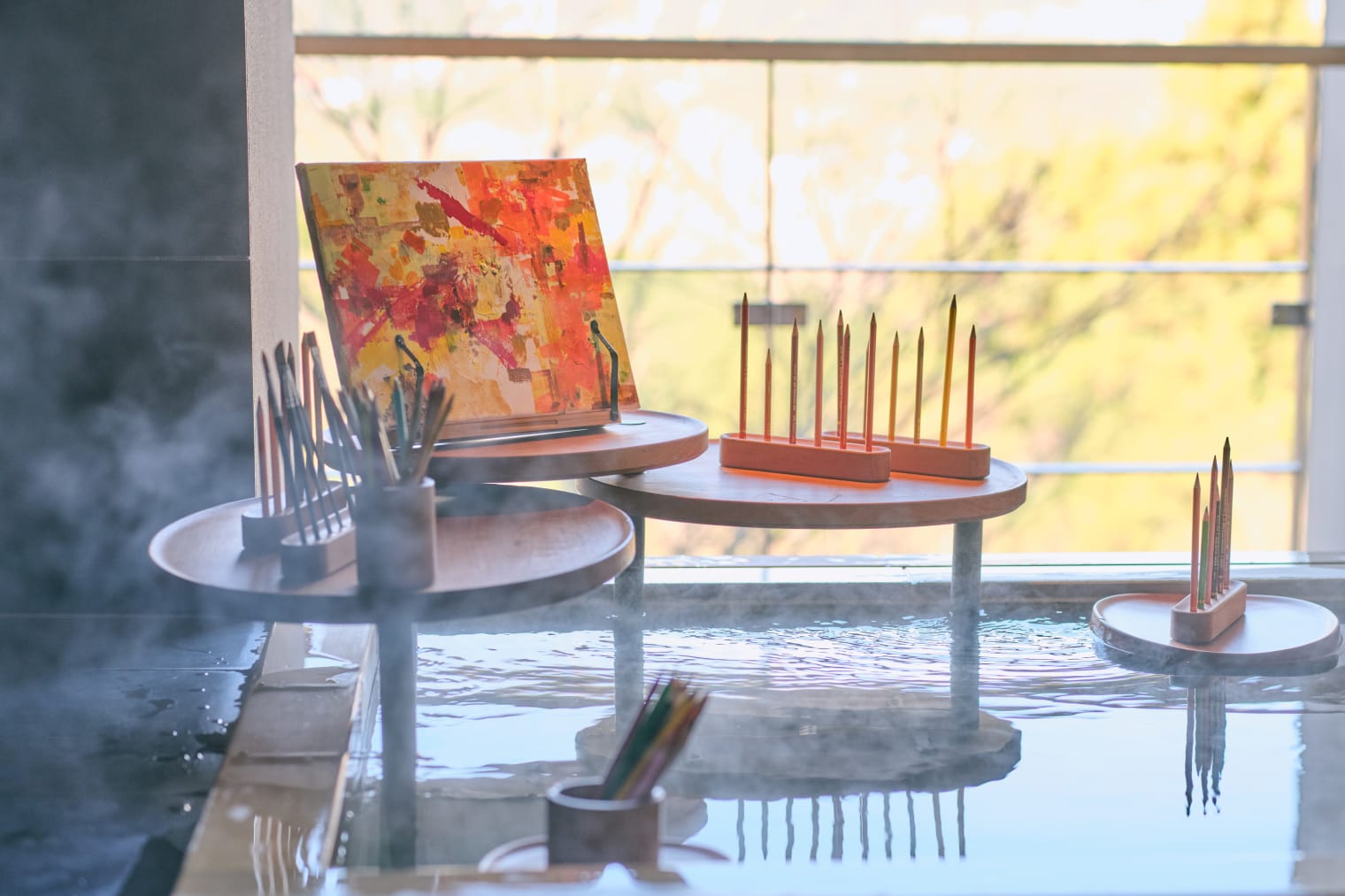 開放的な温泉に浸かりながら、ありのままに感じた色をのせる。