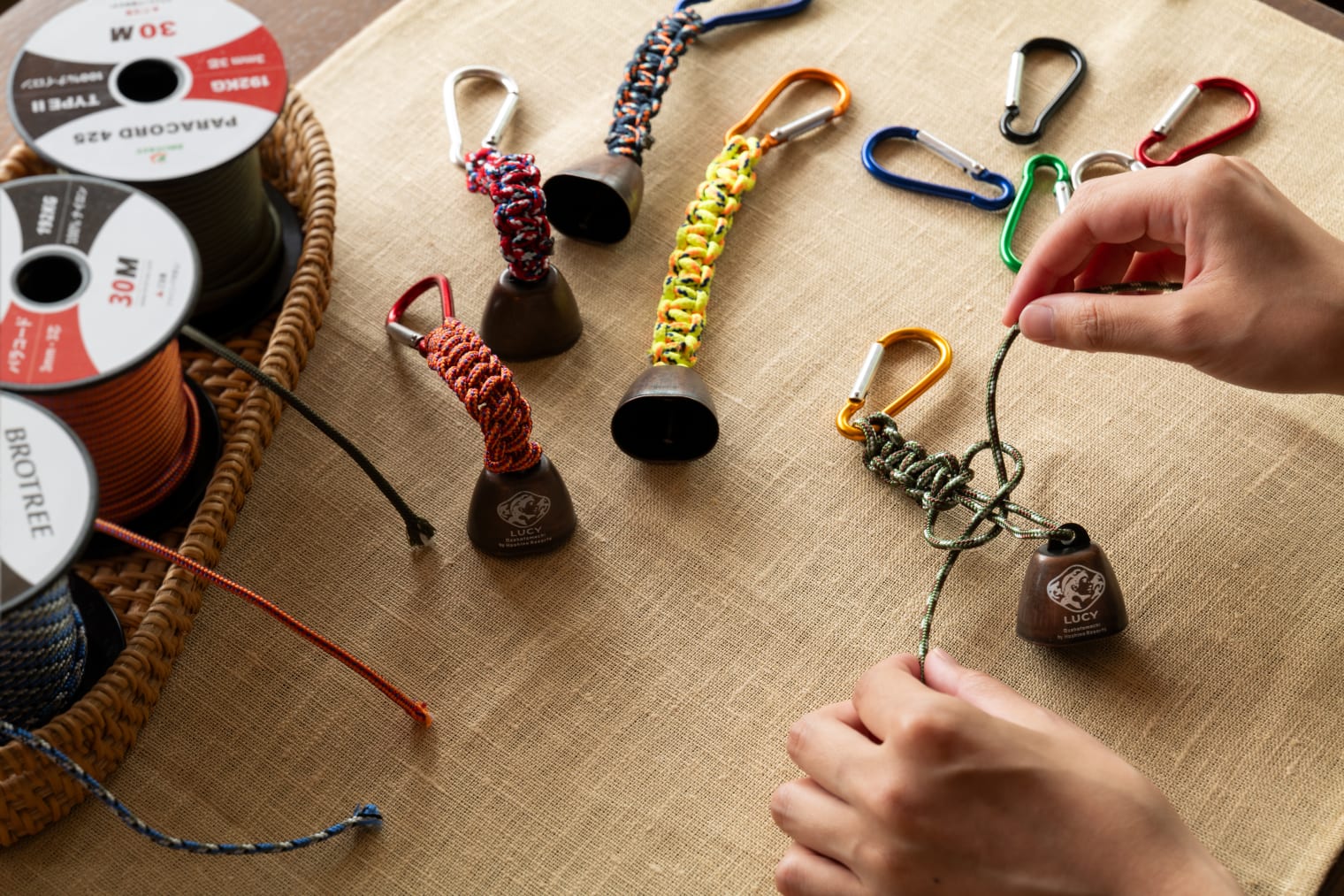 尾瀬の散策にあると安心な「熊鈴」を、パラコード編みで作ることができます。好きな色のパラコードを選び、自分だけの熊鈴づくりに挑戦。