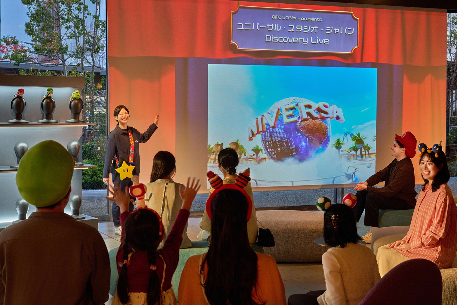 巨大スクリーンに、ユニバーサル・スタジオ・ジャパンの仲間たちが登場!ここだけのオリジナル映像を大迫力の演出で楽しめます。