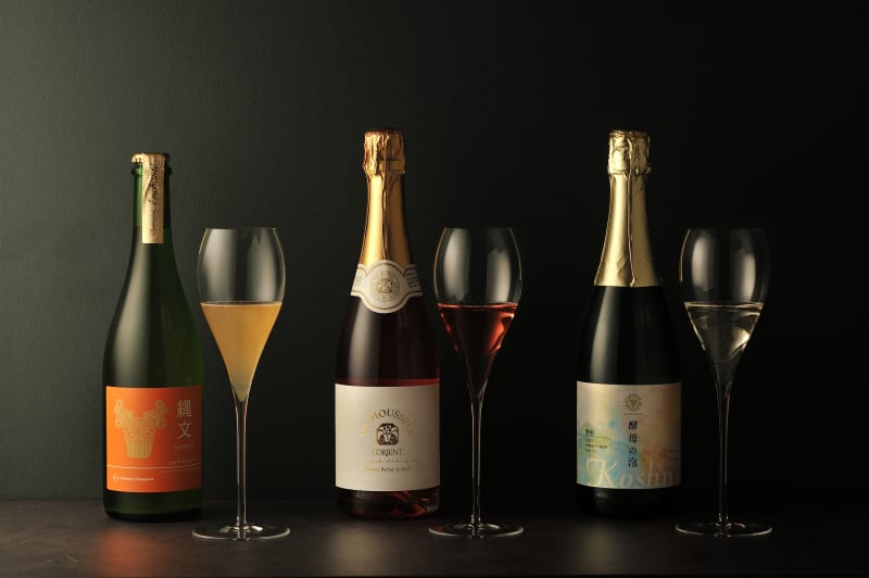 山梨県産の白、ロゼ、オレンジの3種類のスパークリングワインをご用意。山梨のテイストをお楽しみください。