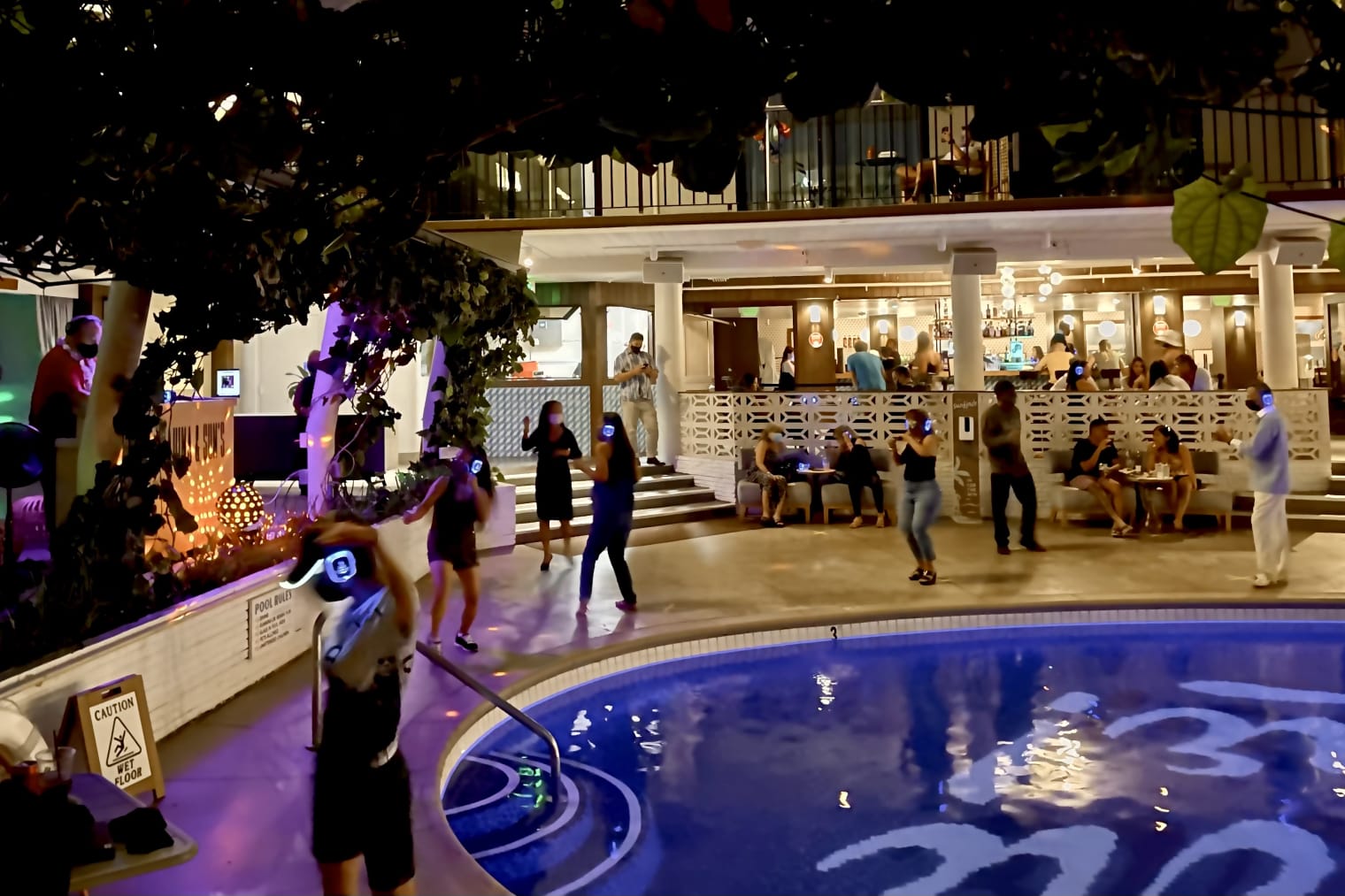 周囲は静かなまま、ヘッドフォンからは80's~90'sのオールド・ディスコミュージックが響き渡ります。プールサイドでお酒を片手に、リズムに身を任せて楽しむユニークな夜。サーフジャックならではの遊び心溢れる体験を。