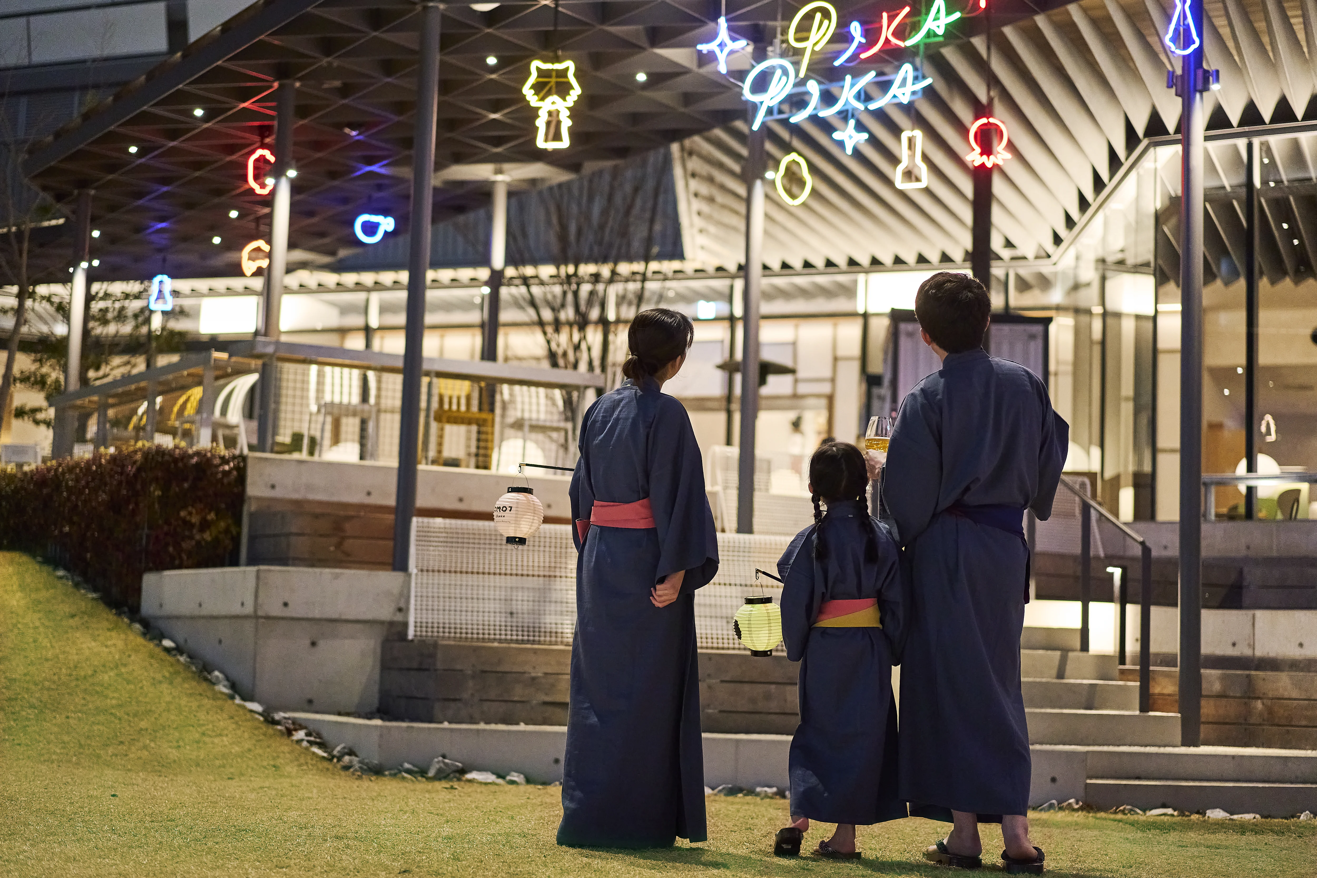 ガーデンエリア「みやぐりん」にて、大阪をテーマにした「なにわネオンアート」の装飾を眺めながら、浴衣でそぞろ歩きを楽しめる宿泊者限定のナイトイベントです。無料でふるまわれるご近所さんのたこ焼きやクラフトビールを堪能できます。ホテルの壁面に花火が打ち上がる演出もあり、秋の夜長に大阪の街に打ちあがる花火を眺め、ゆったりとした時間を過ごせます。