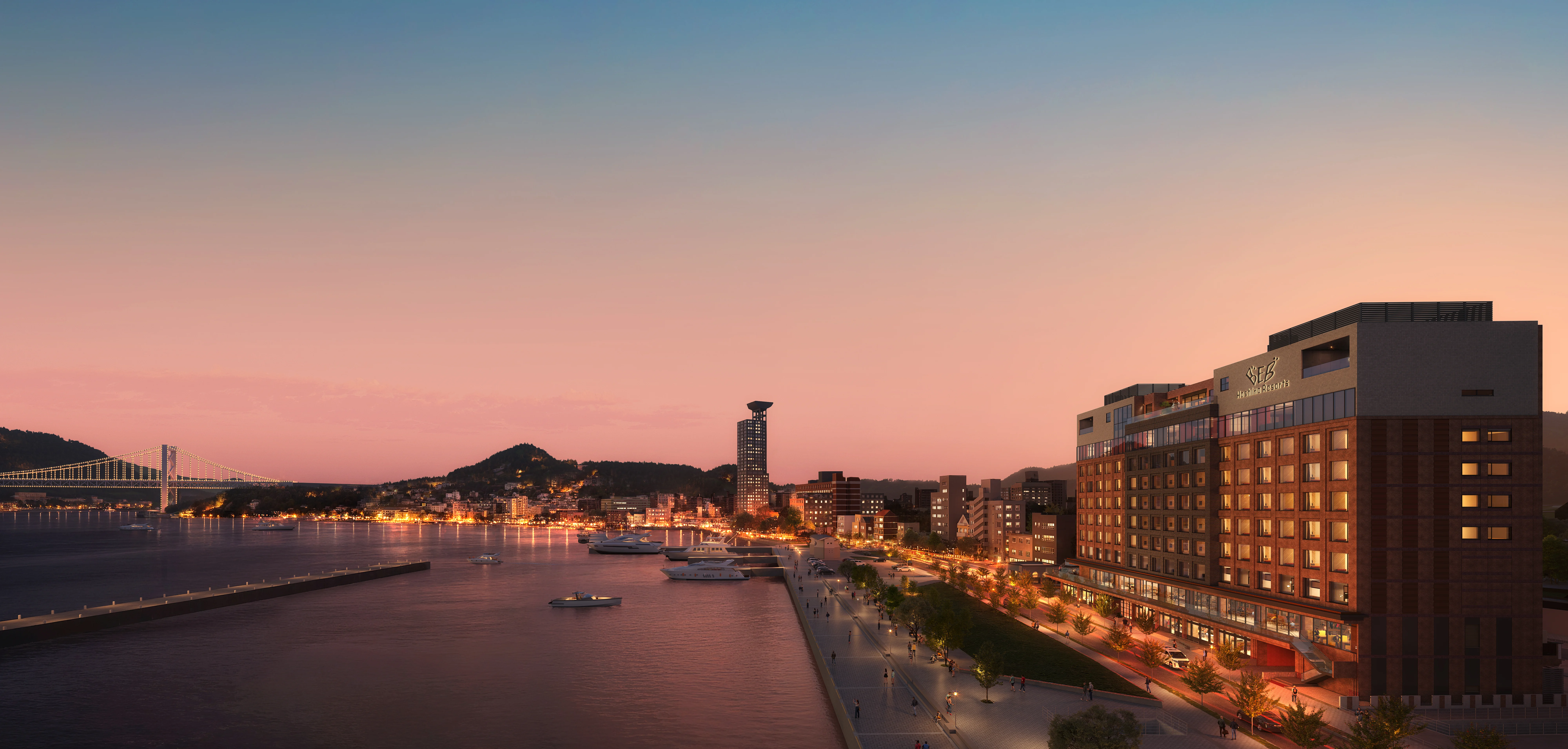 星野リゾートとして福岡県への初進出となる「BEB5門司港」が、歴史的建造物が残るレトロな観光スポット「門司港レトロ」の一角に開業します。コンセプトは「トキメキ海峡ステイ」。関門海峡を望む立地を最大限に活かし、全客室をはじめ、最上階の大浴場や、24時間楽しめる足湯とカフェを併設したラウンジ、ビュッフェレストランの全てが関門海峡ビューの特等席。絶景と遊び心に満ちた心トキメく海峡ステイを提案します。