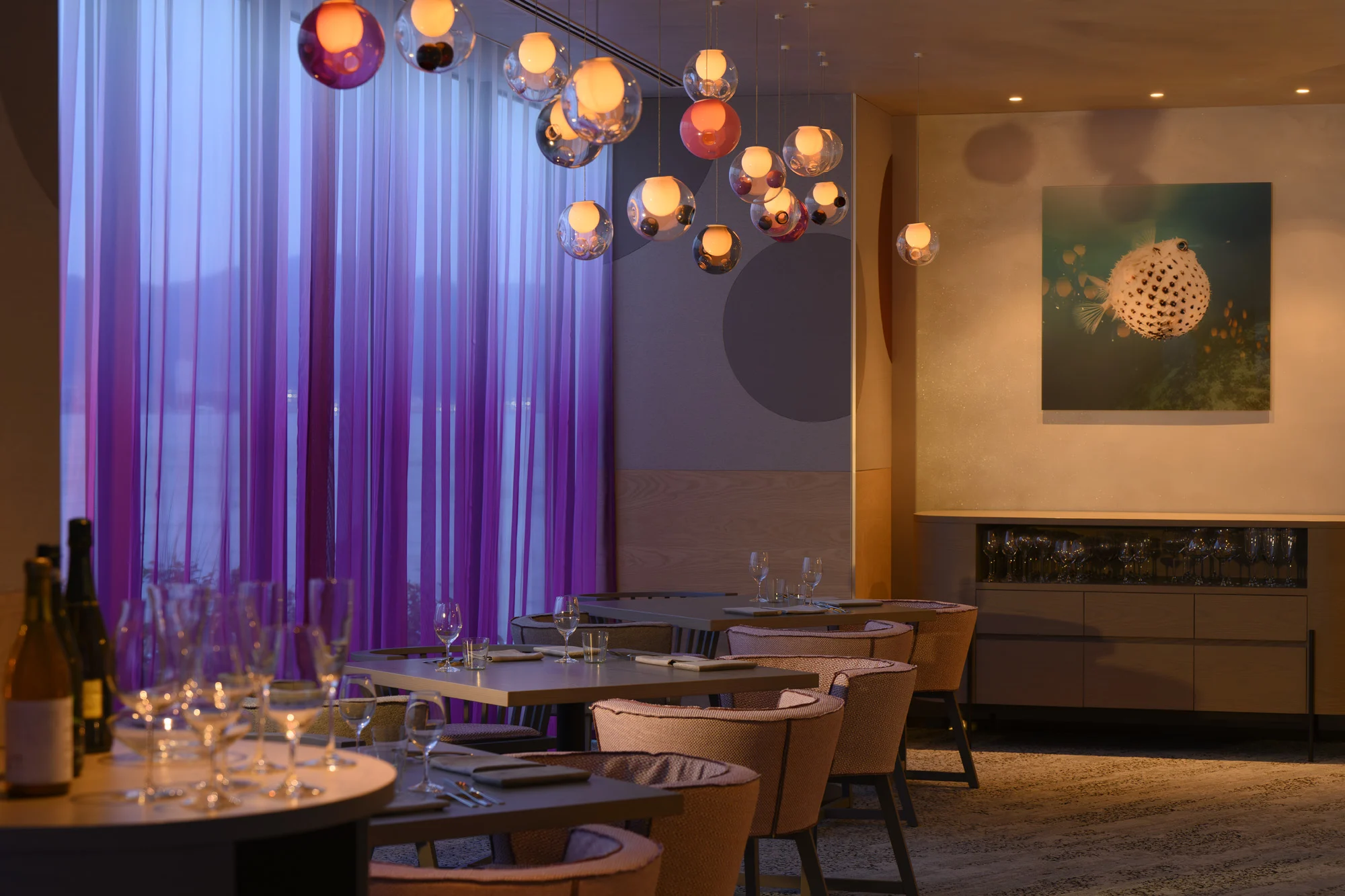 2025年12月に開業した「リゾナーレ下関」は関門海峡を目の前に臨み、行き交う船や対岸の門司港の景色を楽しみながら食事ができます。