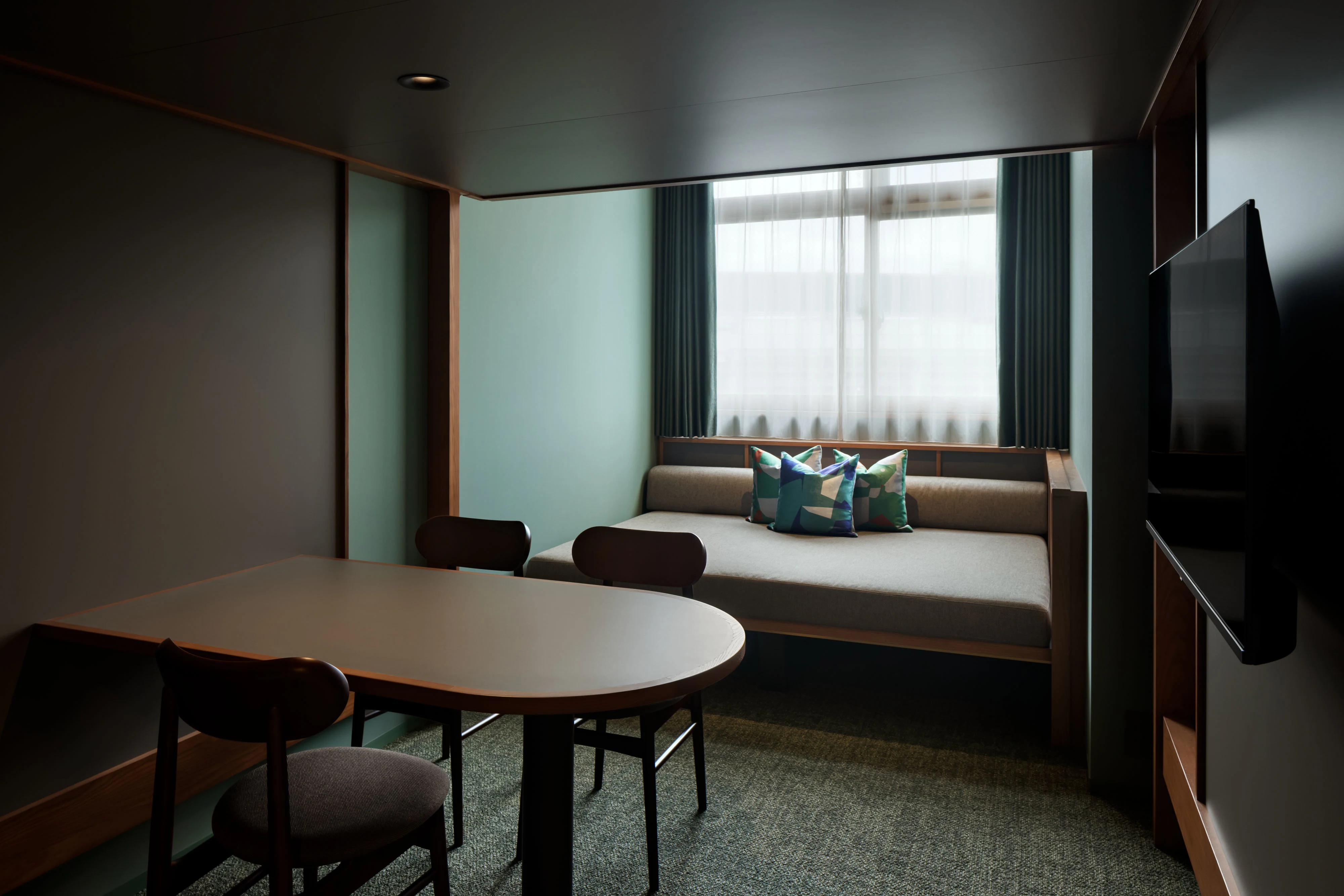 旧横浜市庁舎のインテリアカラーから着想を得た「レガシーカラー」が基調のお部屋です。
