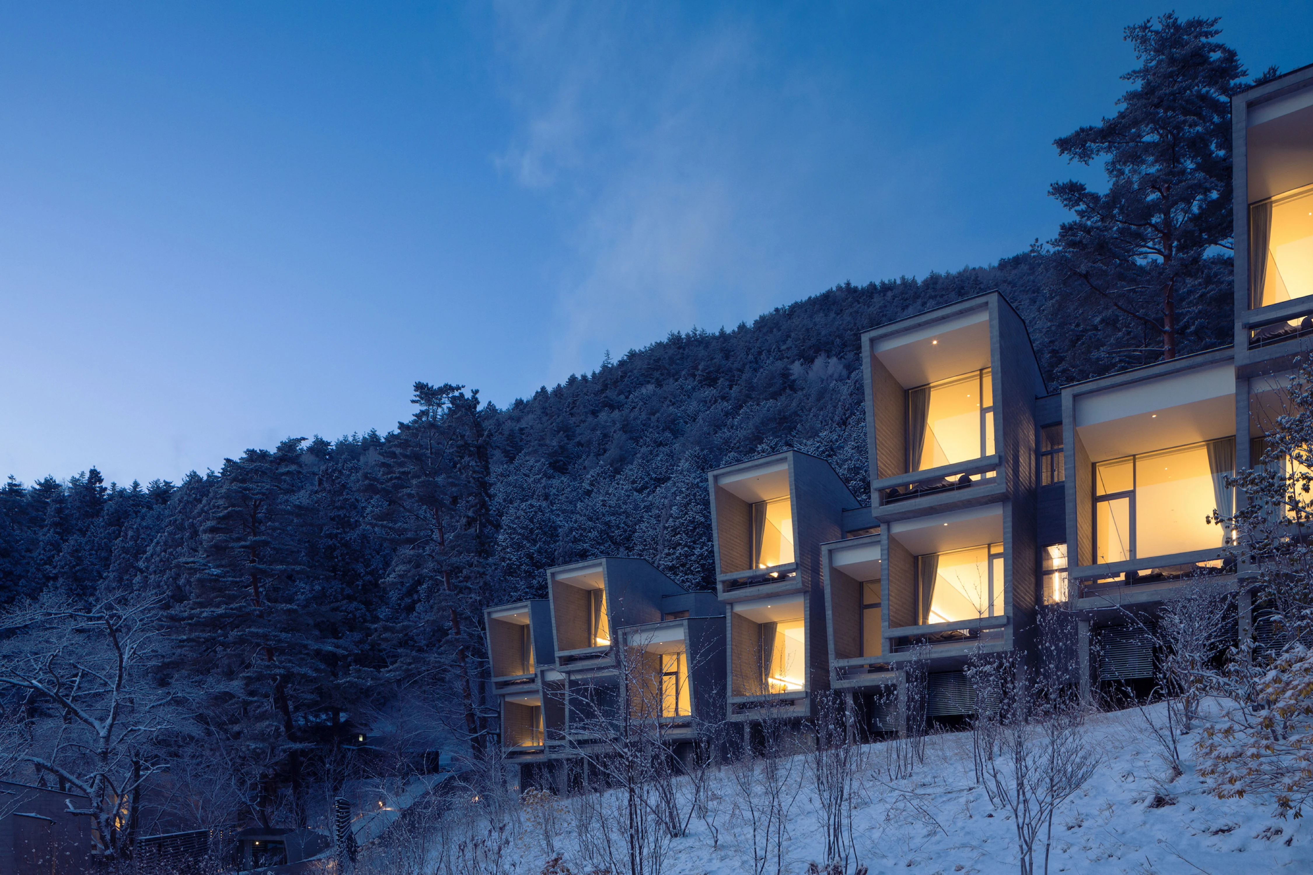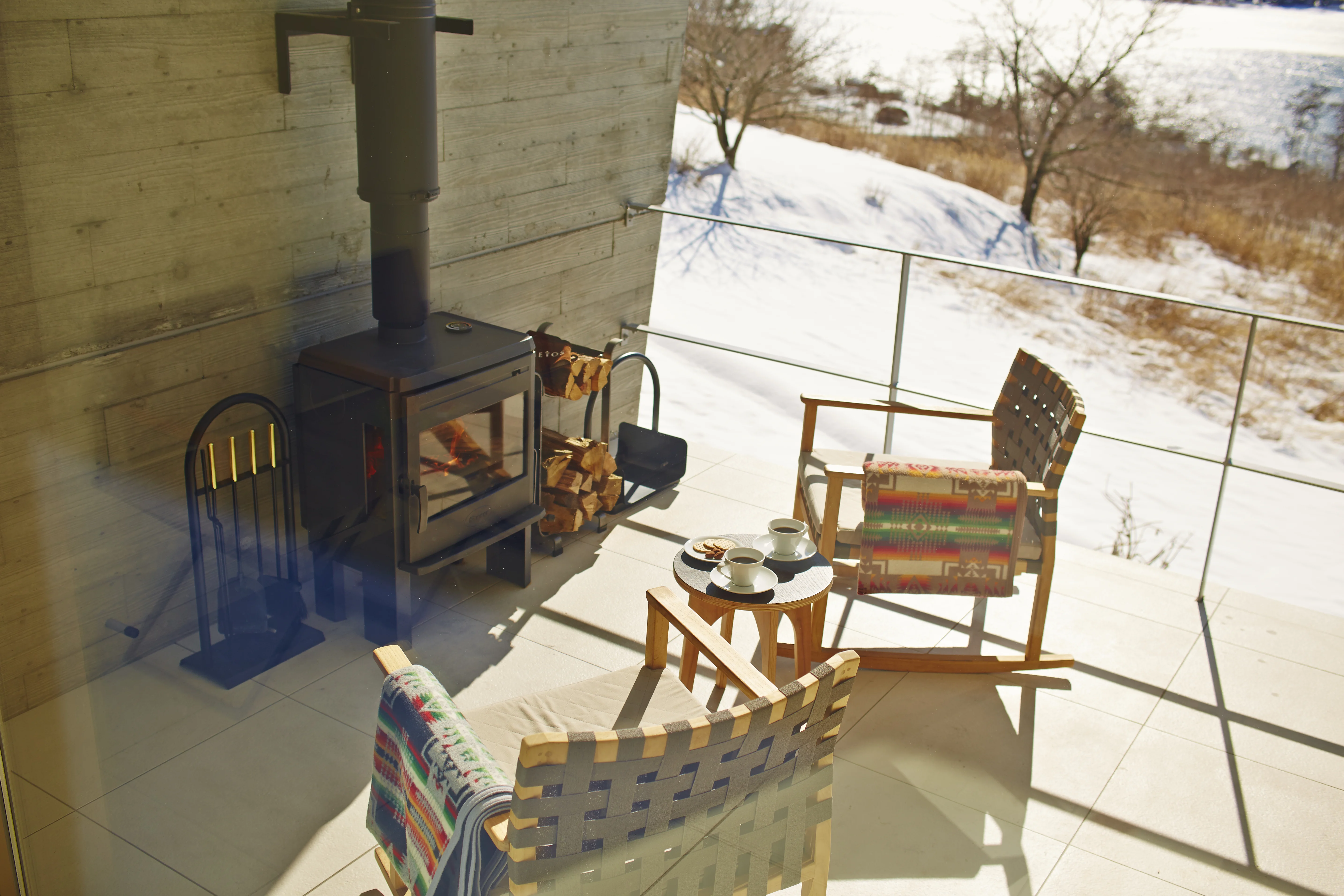 室内にいても屋外の雰囲気を感じながら過ごせるよう、全室に開放的なテラスリビングを設けています。薪ストーブや冬限定のこたつの温もりに包まれながら、心ゆくまで富士北麓の冬の絶景をお楽しみください。