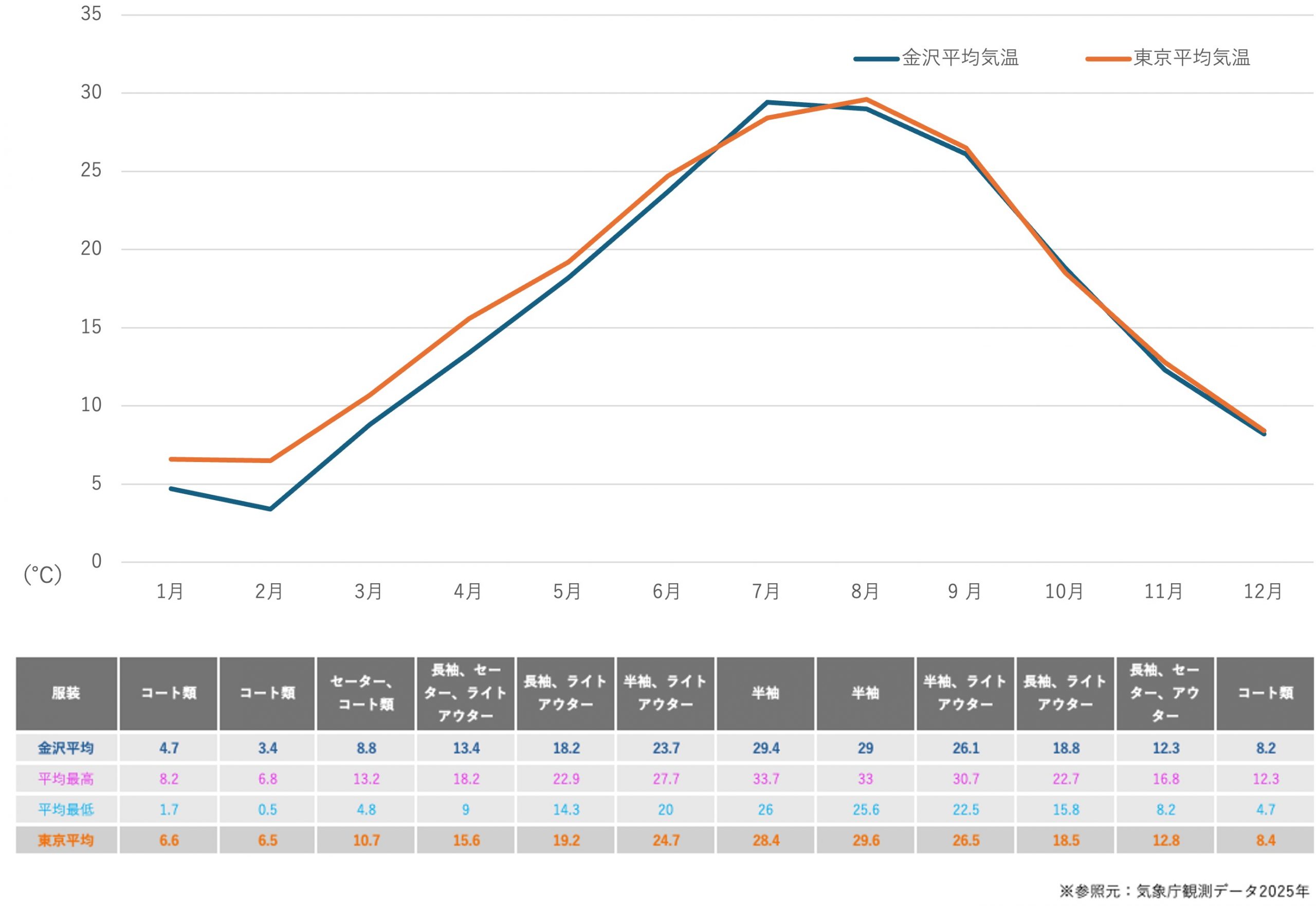 本記事では、金沢への旅の計画の際に知っておきたい気温や服装についてまとめています。