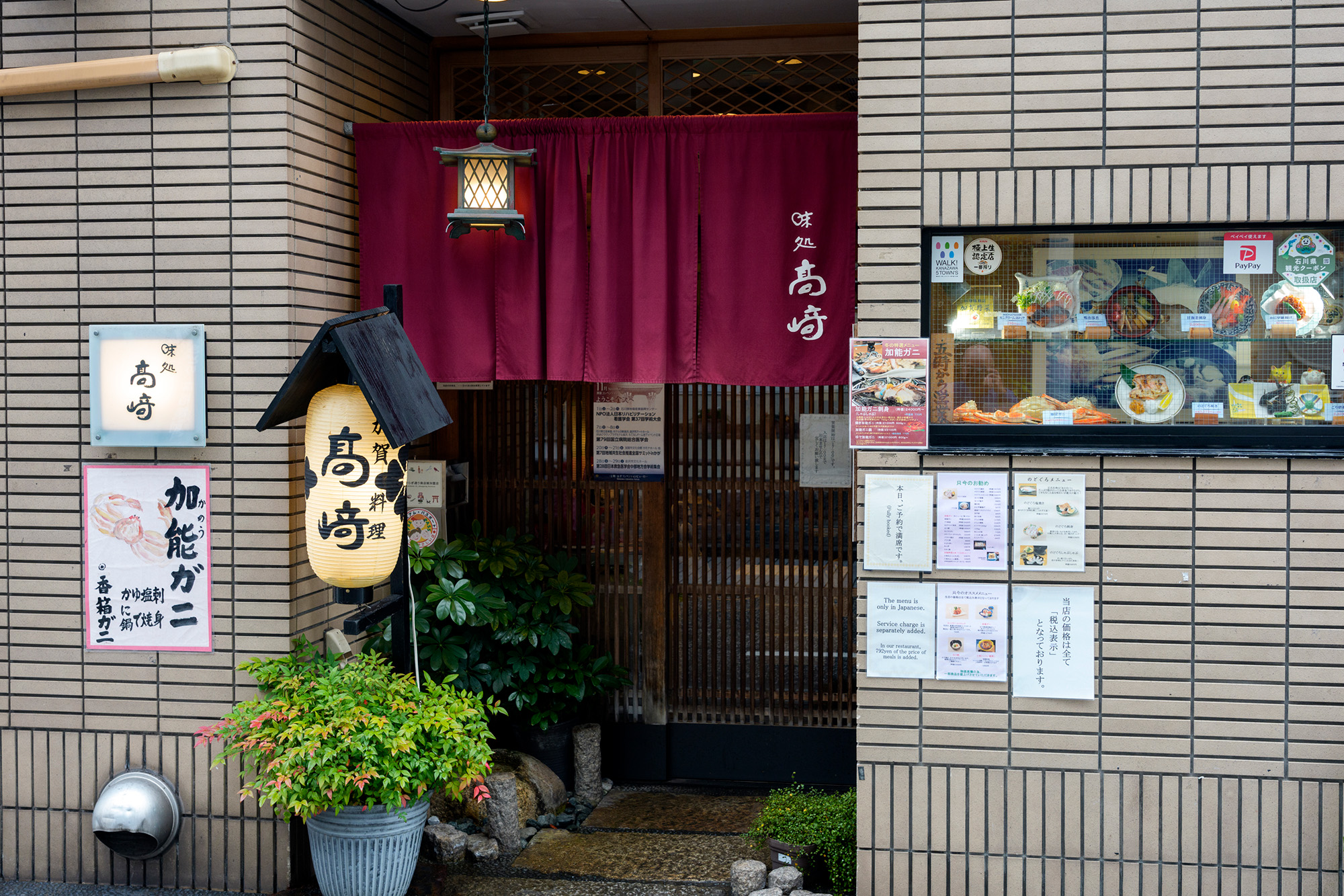 犀川沿いにあるカニの専門店。シーズン中はカニ尽くしのコース料理のみを提供しています。カニは時価という店が多い中、年間契約をしている鮮魚店から大量に仕入れることで、シーズン中は固定価格で提供しているため安心です。