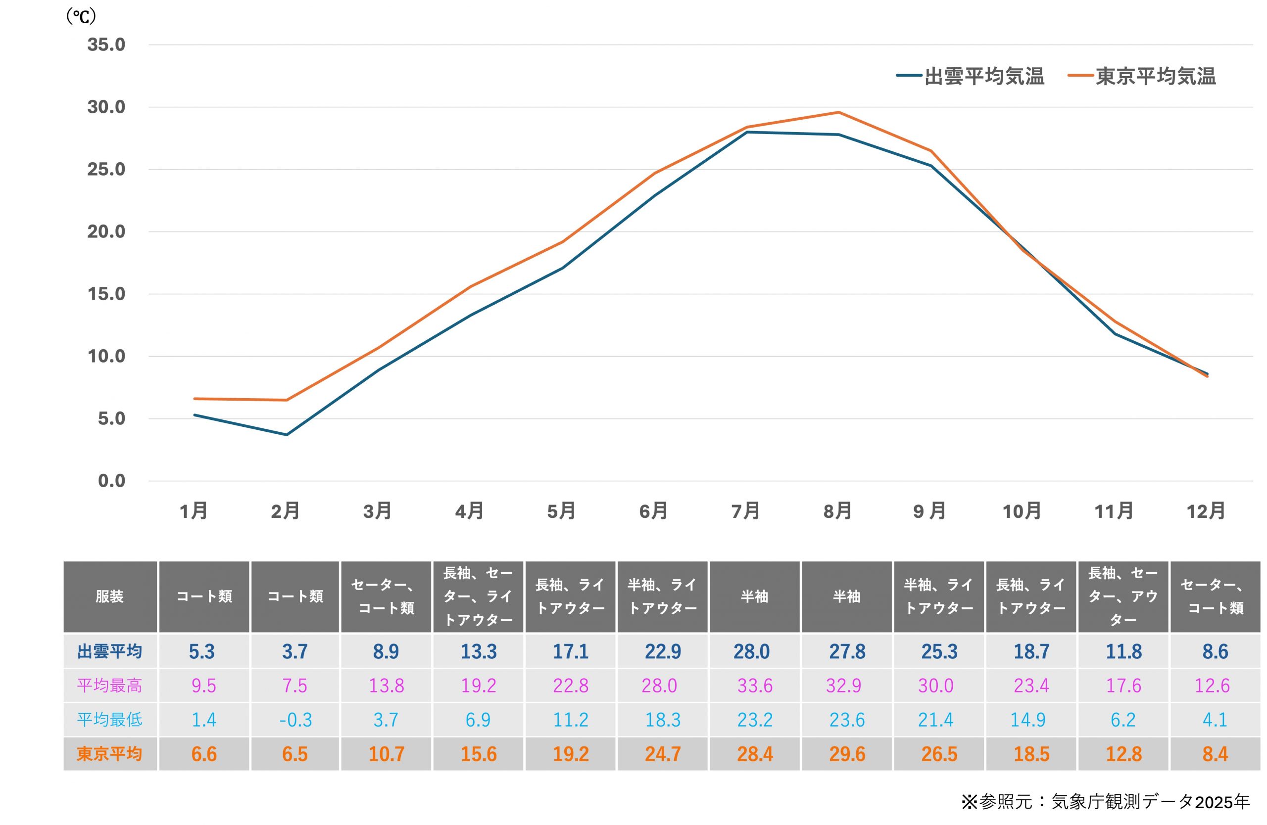 <出雲の気温と服装>