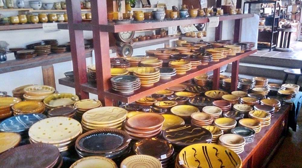 江戸時代から続く「布志名焼(ふじなやき)」の流れを汲む窯元で、1922年(大正11年)に開窯。日常の工芸品に美を見いだす「民藝運動」を推進した柳宗悦や、イギリス人陶芸家バーナード・リーチらから学んだ技を受け継ぎつつ、新たな表現も取り入れた多彩な器が並びます。