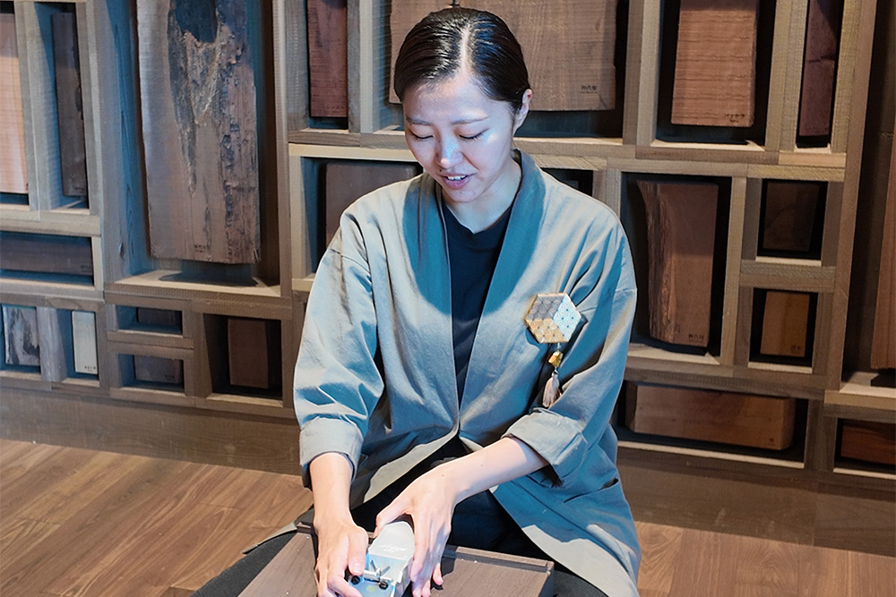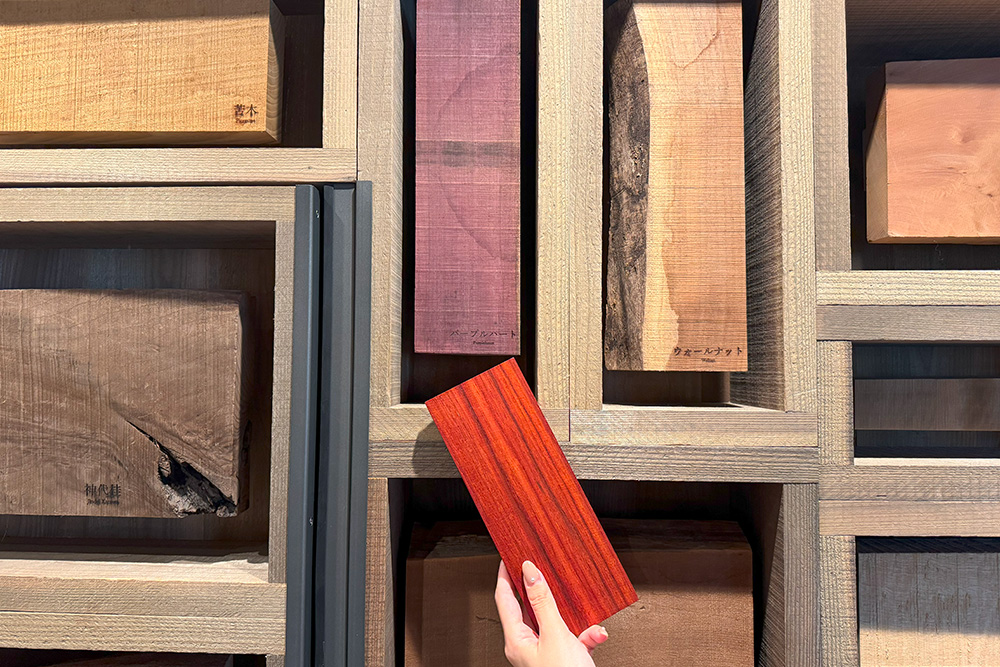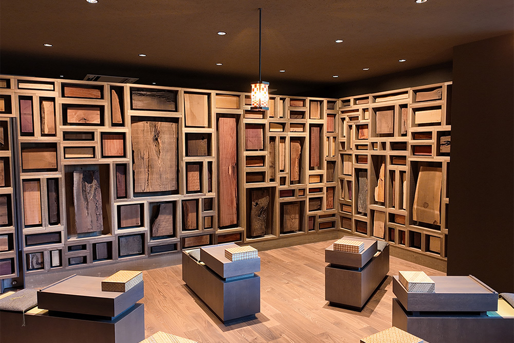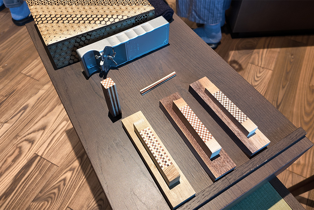 木の種類や組み合わせで色や模様が変わり、それが寄木細工のデザインを形作っています。体験後に改めて部屋の装飾やルームキーなどを見た際には、もっと愛着を持ってもらえると思います。