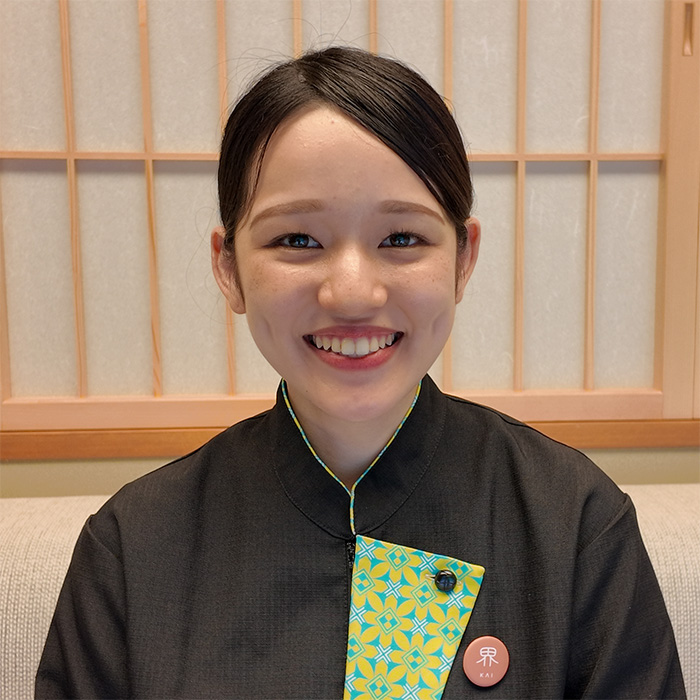 2022年星野リゾート入社。界 箱根にてフロント、サービス業務を担当。界 箱根リニューアル期間には界 奥飛騨での勤務経験も。趣味は動物園巡りと自然の中でのんびりすること。