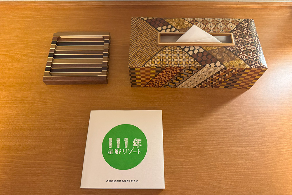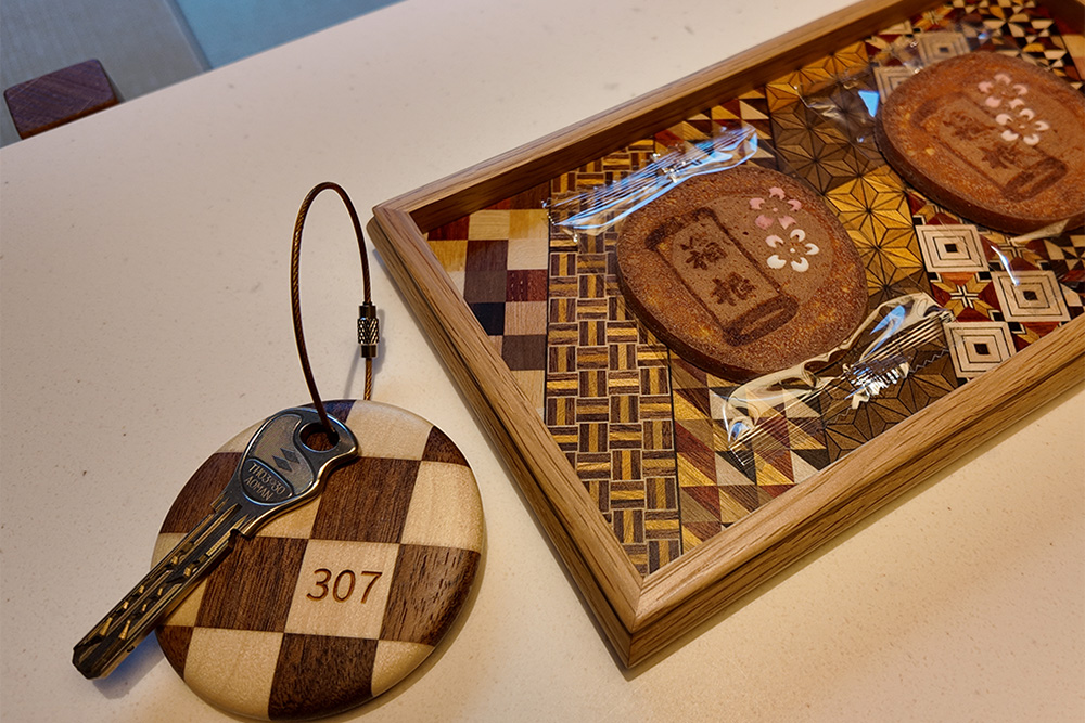 寄木細工のルームキーや風呂敷。手に取るたび心が弾むアメニティ