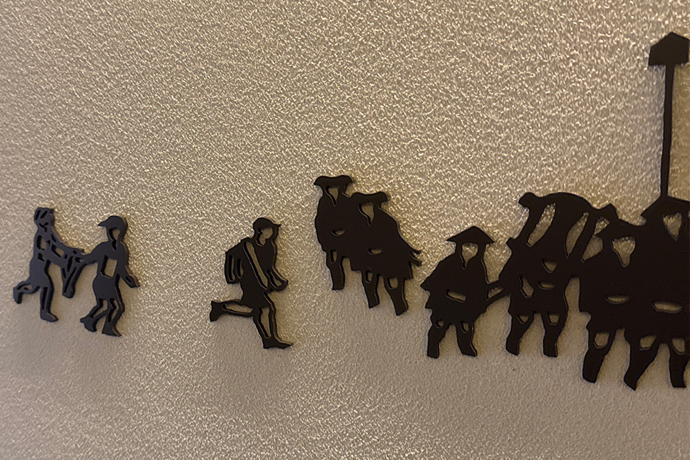 大浴場へ続く廊下には「今昔参勤交代」のデザインが施されています。箱根駅伝のランナーなど、現代的な要素を織り交ぜた遊び心溢れる意匠となっています。ご滞在の際、お気に入りのデザインを探してみてください。