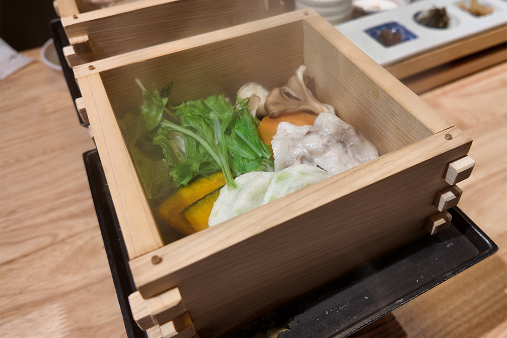 せいろ蒸しは、東海道の旅人の疲れを癒した温泉の「湯けむり」に見立てた一品です。蓋を開けた瞬間に広がる湯気とともに、箱根ならではの風景を食事でもお楽しみください。