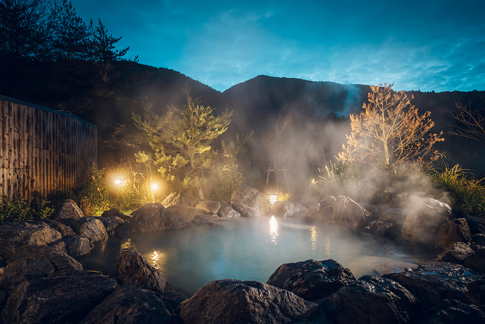 仁田峠の紅葉とバトンタッチするように三十路苑のモミジが色づき、長い期間紅葉が楽しめるのも雲仙の魅力です。日中はキッチンカーや雑貨店などのポップアップストアも出店していて、にぎやかですよ。