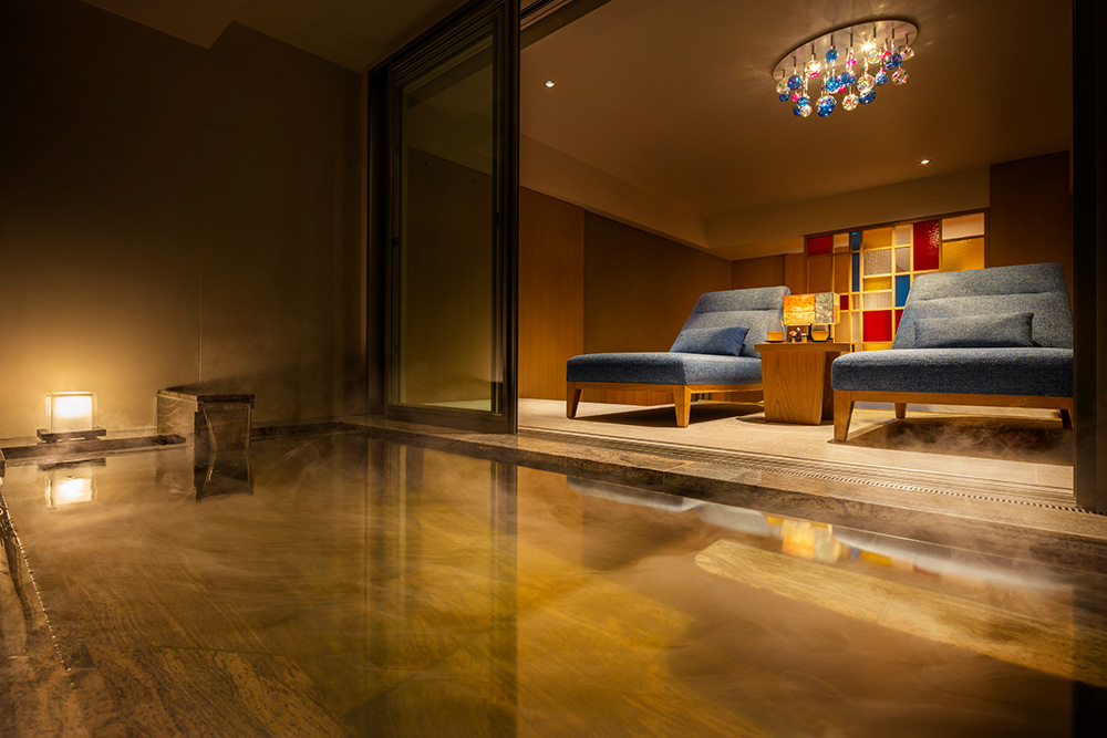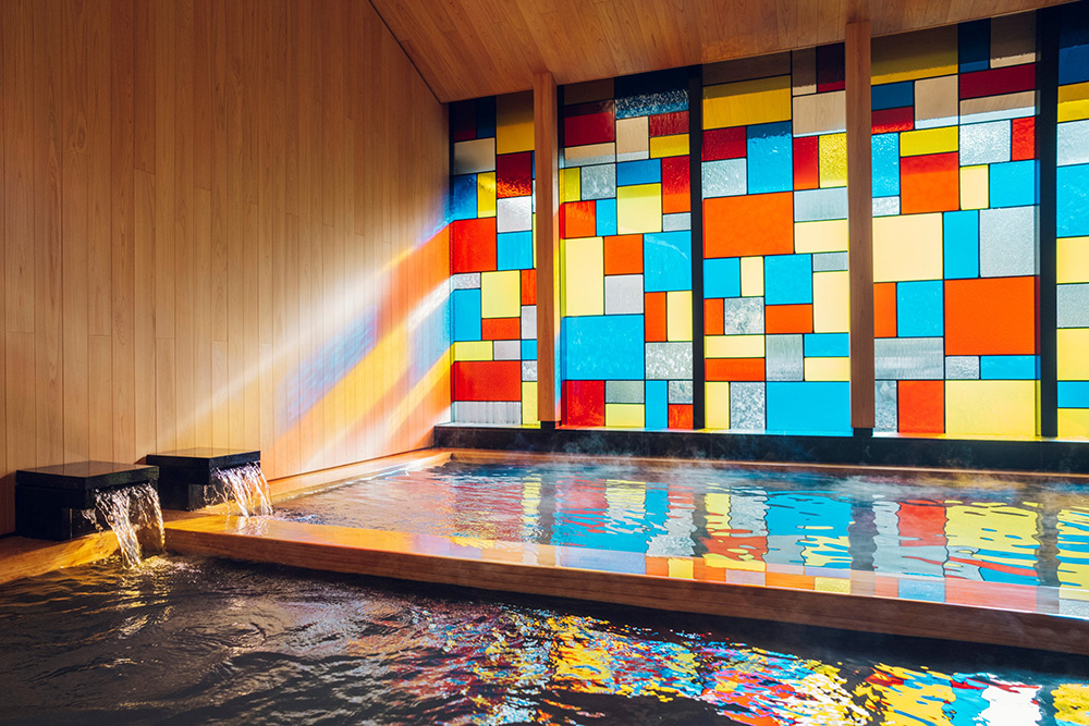 紅葉シーズンになると、期間限定で「逆さ紅葉」が一般公開され、注目を集めています。逆さ紅葉とは、旧本堂の広間に10畳分のアクリル板をはめ込み、日本庭園の鮮やかなモミジを逆さまに映し出すというフォトジェニックな仕掛け。真紅、薄紅色、橙、琥珀色、そして翡翠のような松の緑。多彩な木々の色が床にリフレクションして、絵画のような色彩の世界にうっとりしてしまいます。角度によって表情を変えるその光景は、佐世保の秋を象徴する風物詩のひとつです。