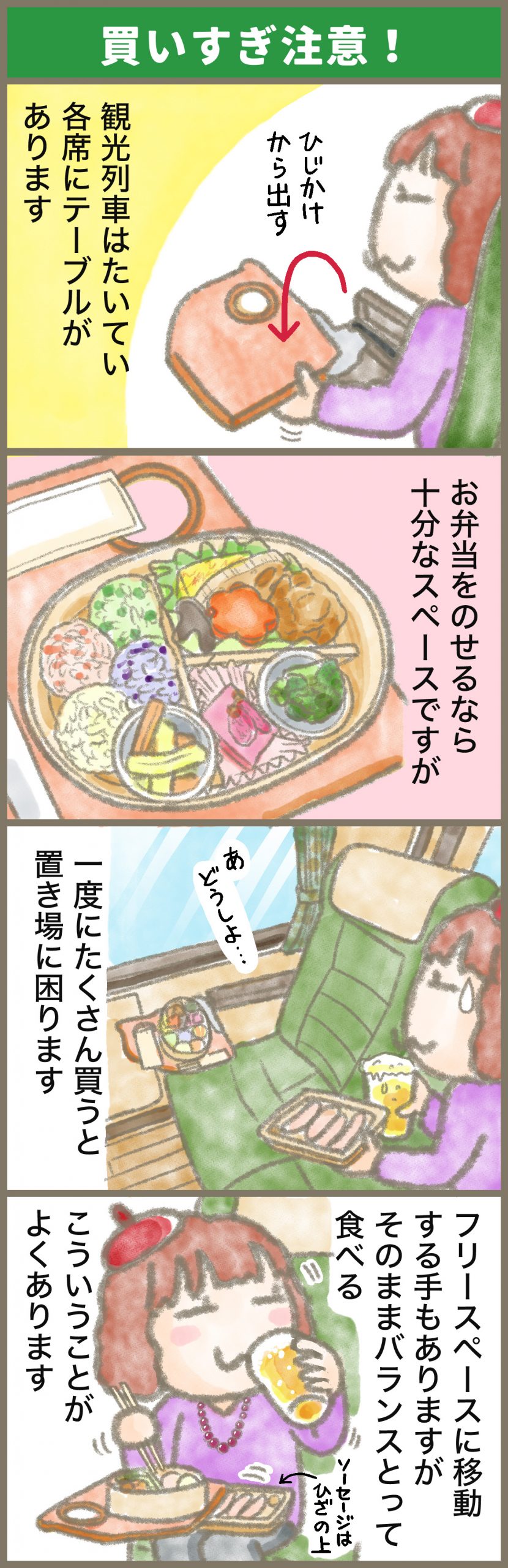 しばし左手に海を眺めながら、ビュッフェ(売店)に向かいました。由布院駅までは車内が空いているので、今のうちに予約したお弁当を受け取ります。