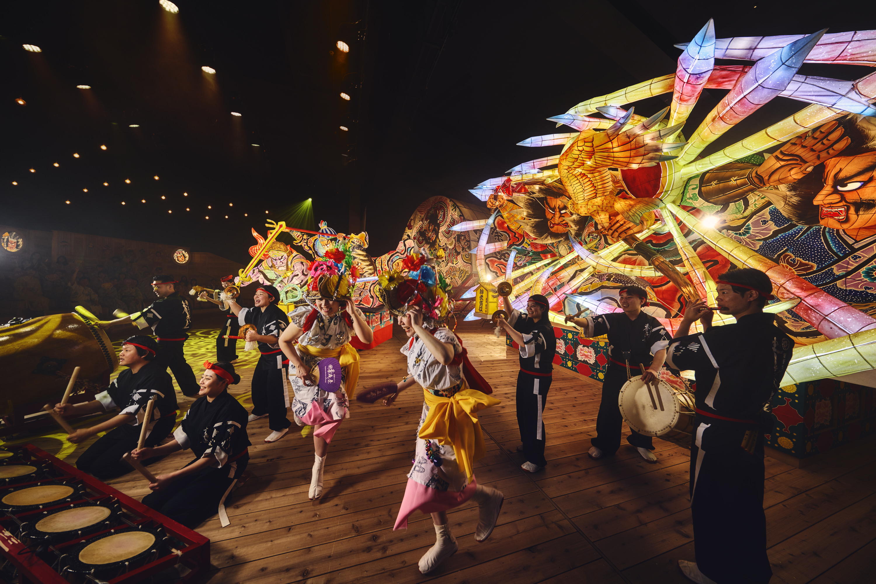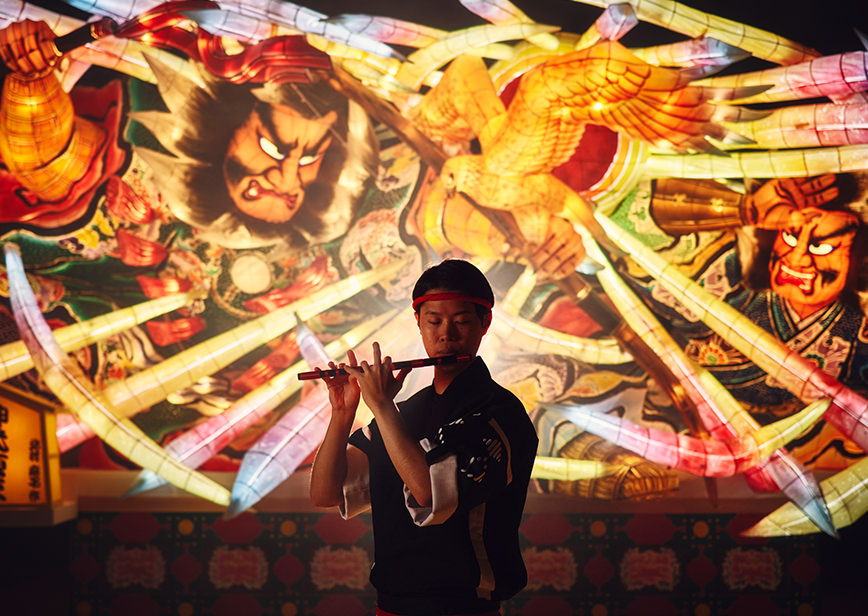 お客さまに祭りの熱気を365日体感していただきたいという思いからスタートしたプログラム「みちのく祭りや」。2006年のオープンから15年をむかえた22年4月、さらに祭りの熱気を感じるショー会場に生まれ変わりました。青森ねぶた祭、弘前ねぷたまつり、五所川原立佞武多、八戸三社大祭と、個性的な夏の祭りをホテルの中で体感していただけます。