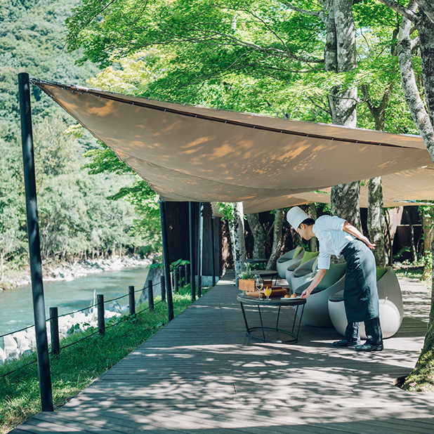 星野リゾートでは、一人のスタッフがお部屋の清掃からレストラン、フロント業務まで、マルチタスクで行います。調理を知っているからこそレストランサービスで調理方法をしっかりとお伝えできたり、お部屋の清掃を自分たちがしているからこそお部屋のくつろぎ方をフロントでお話しできたりするんです。