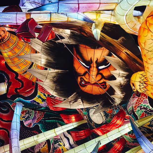 一方で弘前や黒石のねぷたのモチーフには幽霊絵が多く、「ヤーヤドー」という情緒的な掛け声で、戦から帰ってきた武士を鎮魂するような雰囲気があります。観客と山車の距離が近く、絵のタッチも非常に繊細で、柔らかさがあるのが特徴です。